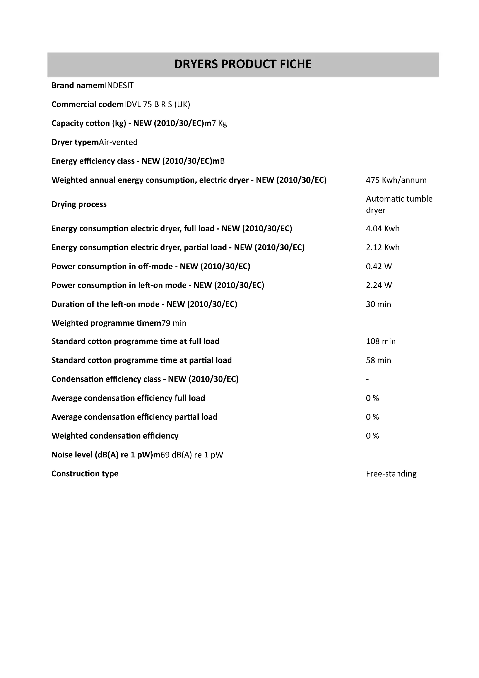 Retrouvez gratuitement la notice de l'appareil IDVL 75 B R S (UK) INDESIT au format PDF.