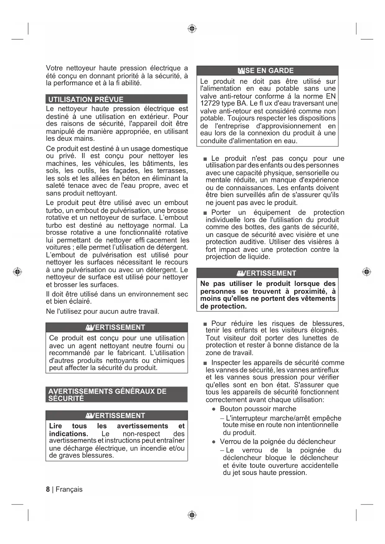 Votre nettoyeur haute pression électrique a été conçu en donnant priorité à la sécurité, à la performance et à la fiabilité.
