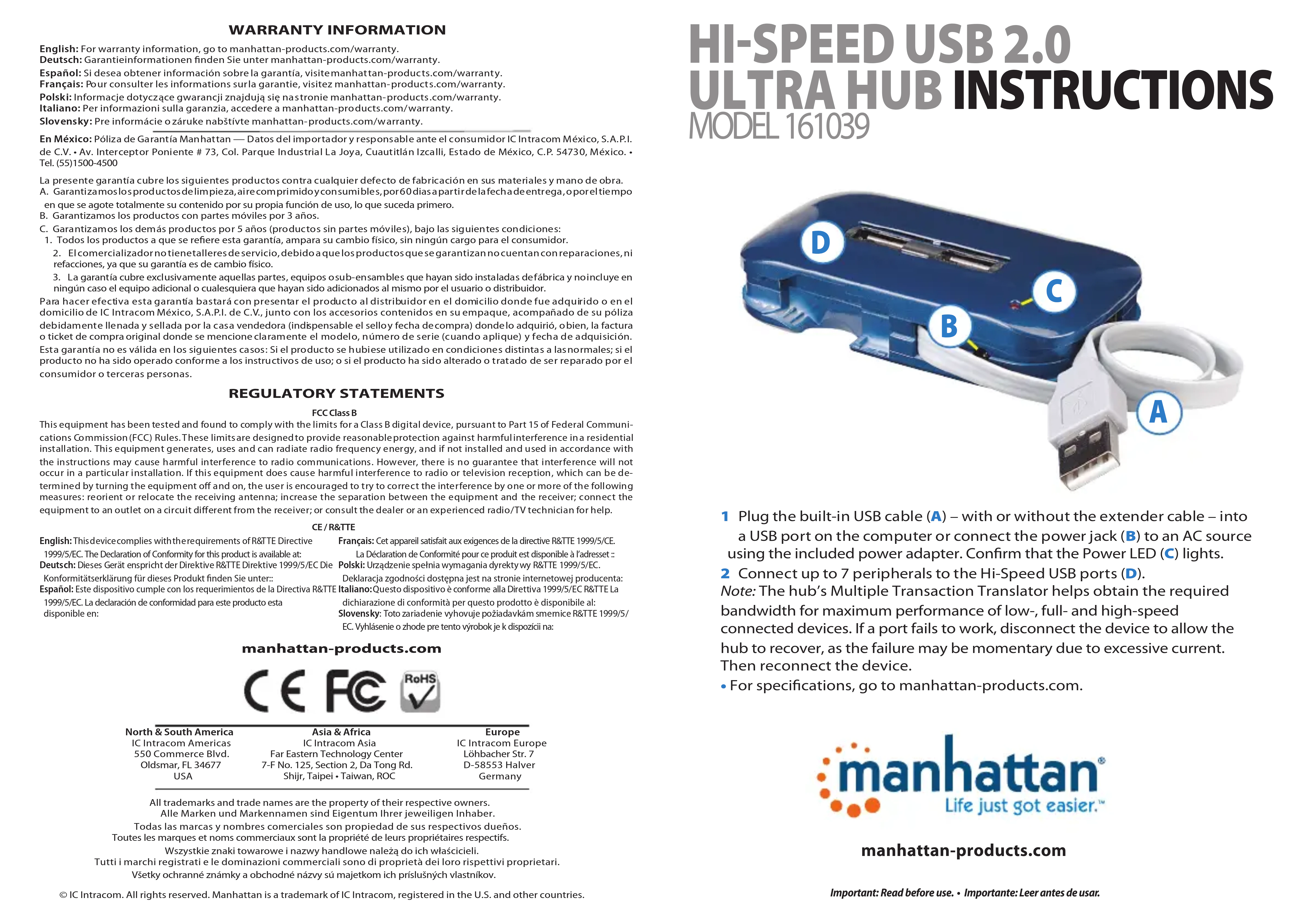 Téléchargez la notice de votre USB hub au format PDF gratuitement ! Retrouvez votre notice 161039 - MANHATTAN et reprennez votre appareil électronique en main. Sur cette page sont publiés tous les documents nécessaires à l'utilisation de votre appareil 161039 de la marque MANHATTAN.
