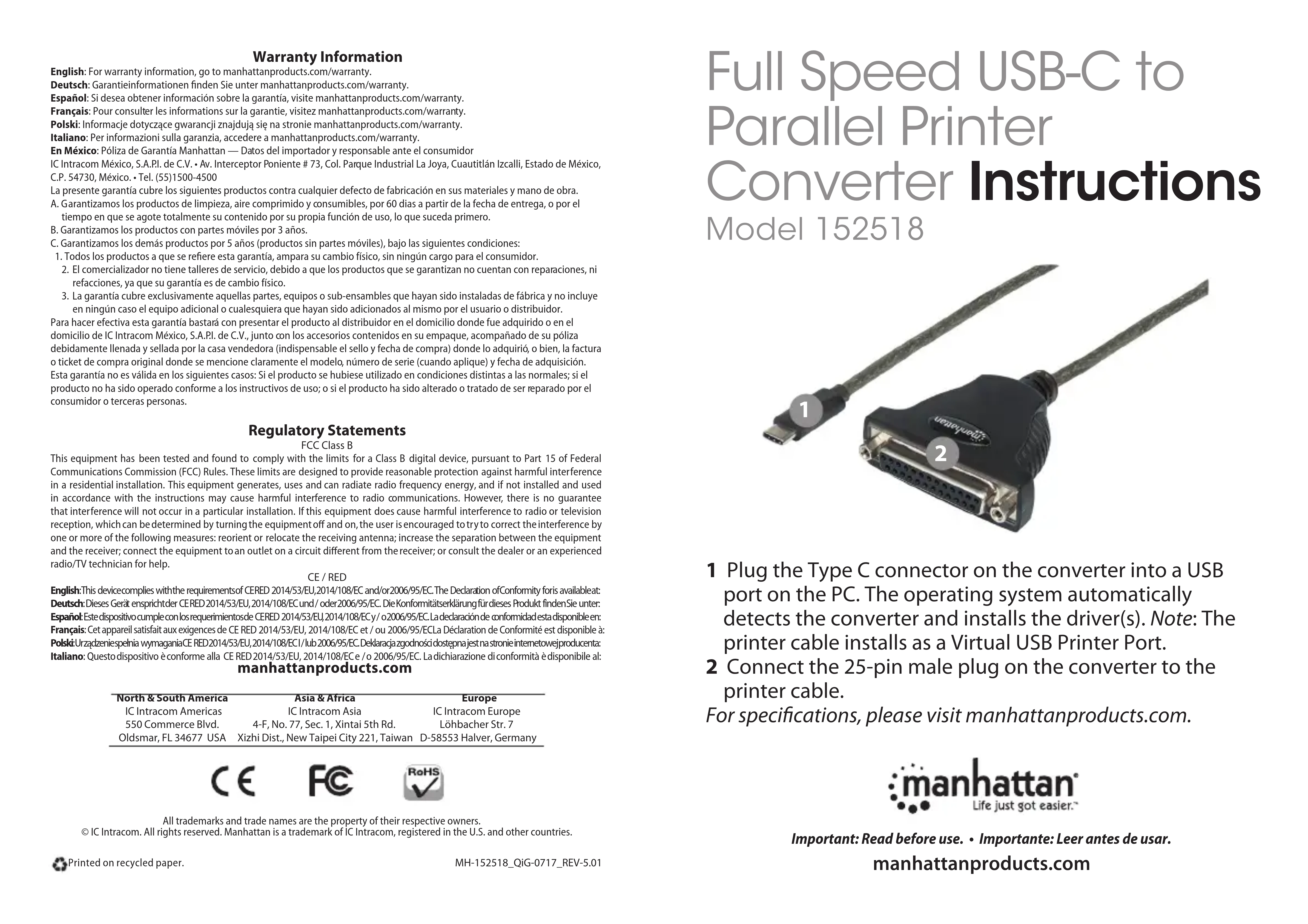 152518 - Convertisseur USB MANHATTAN - Notice d'utilisation et mode d'emploi gratuit