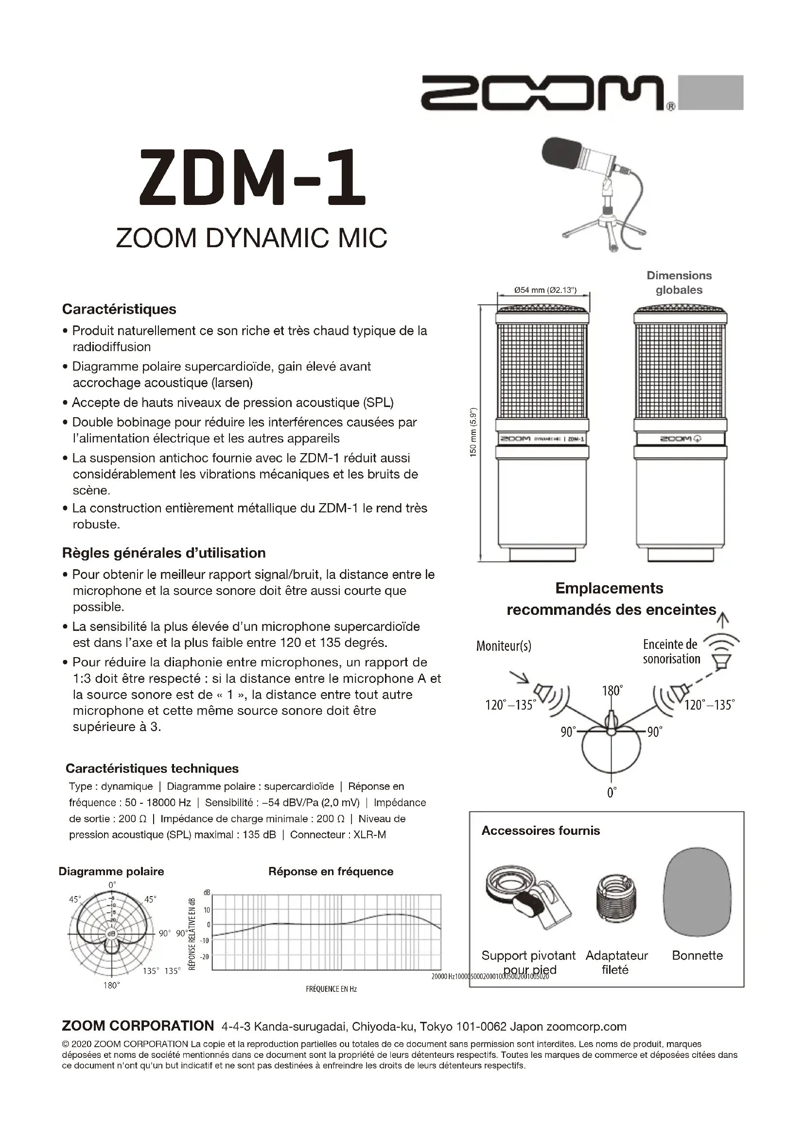 ZDM1 - Microphone ZOOM - Notice d'utilisation et mode d'emploi gratuit