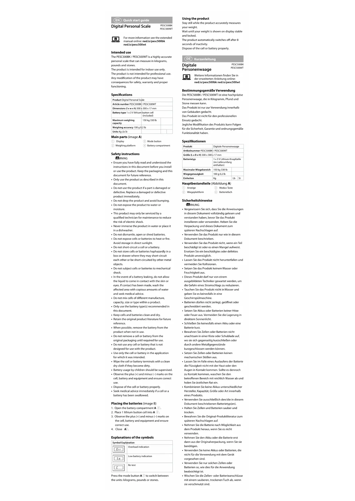 Pour plus d'informations, consultez le manuel détaillé en ligne: ned.is/pesc500bk ned.is/pesc500wt