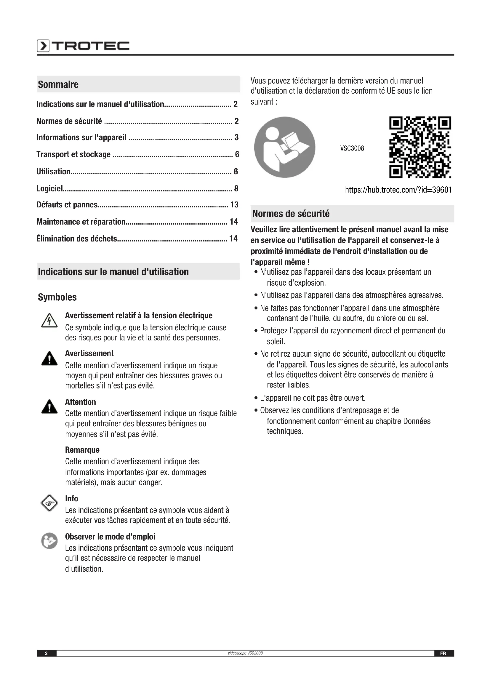 Retrouvez gratuitement la notice de l'appareil VSC3008 TROTEC au format PDF.