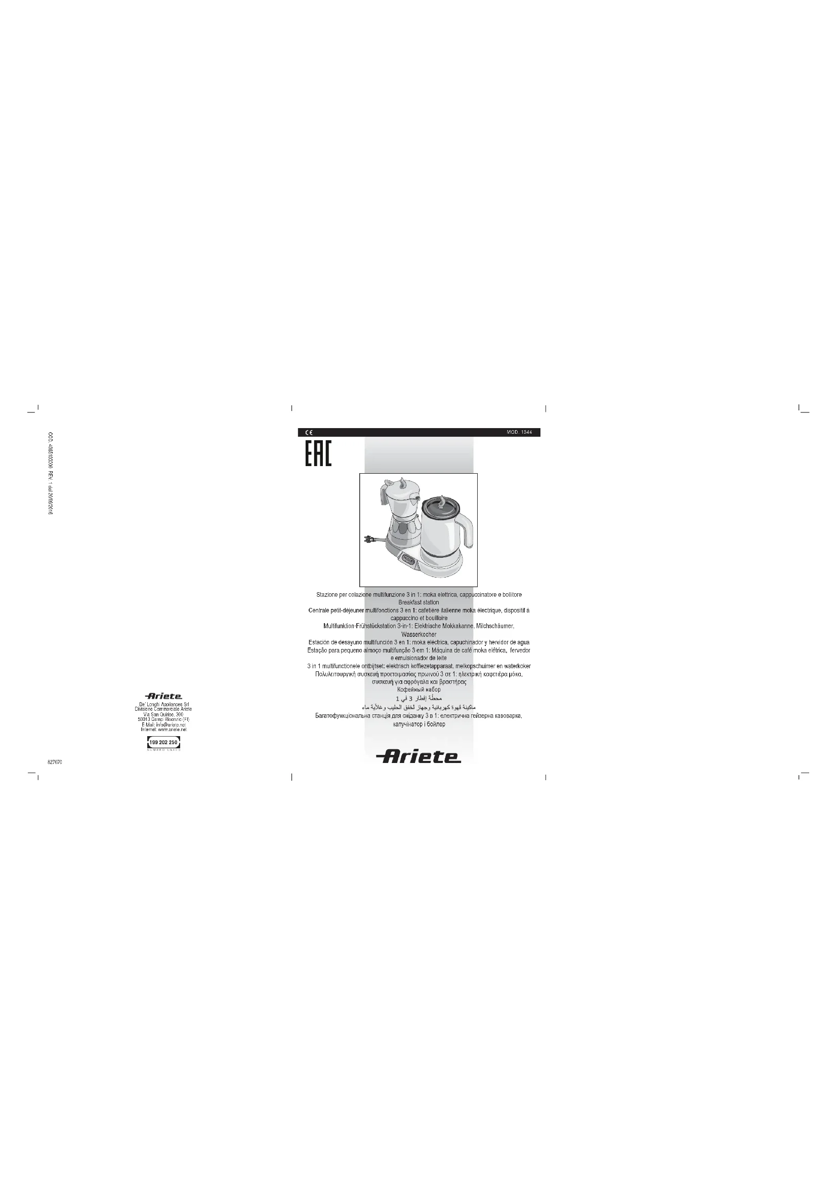 Retrouvez gratuitement la notice de l'appareil Breakfast Station 1344 ARIETE au format PDF.