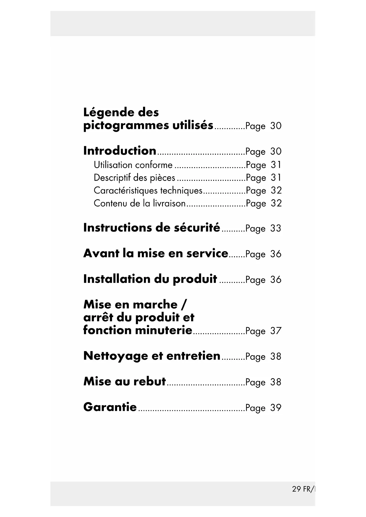 TION ! Pour des raisons relevant de la sécurité électrique, ne plongez jamais le produit dans l’eau. N‘utilisez aucun solvant, benzine ou produit similaire. Cela endommagerait le produit. Nettoyez le produit régulièrement avec un chif- fon sec et non-pelucheux. En cas de salissures plus importantes, utilisez un chiffon légèrement humide. Mise au rebut L’emballage se compose de matières recyclables pouvant être mises au re- but dans les déchetteries locales. Le «point vert» n‘est pas valable en Allemagne.