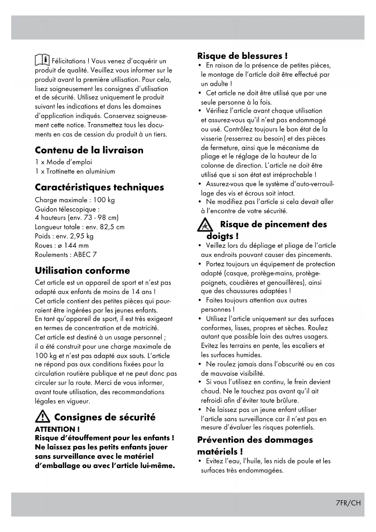 1 x Mode d'emploi 1 x Trotinette en aluminium