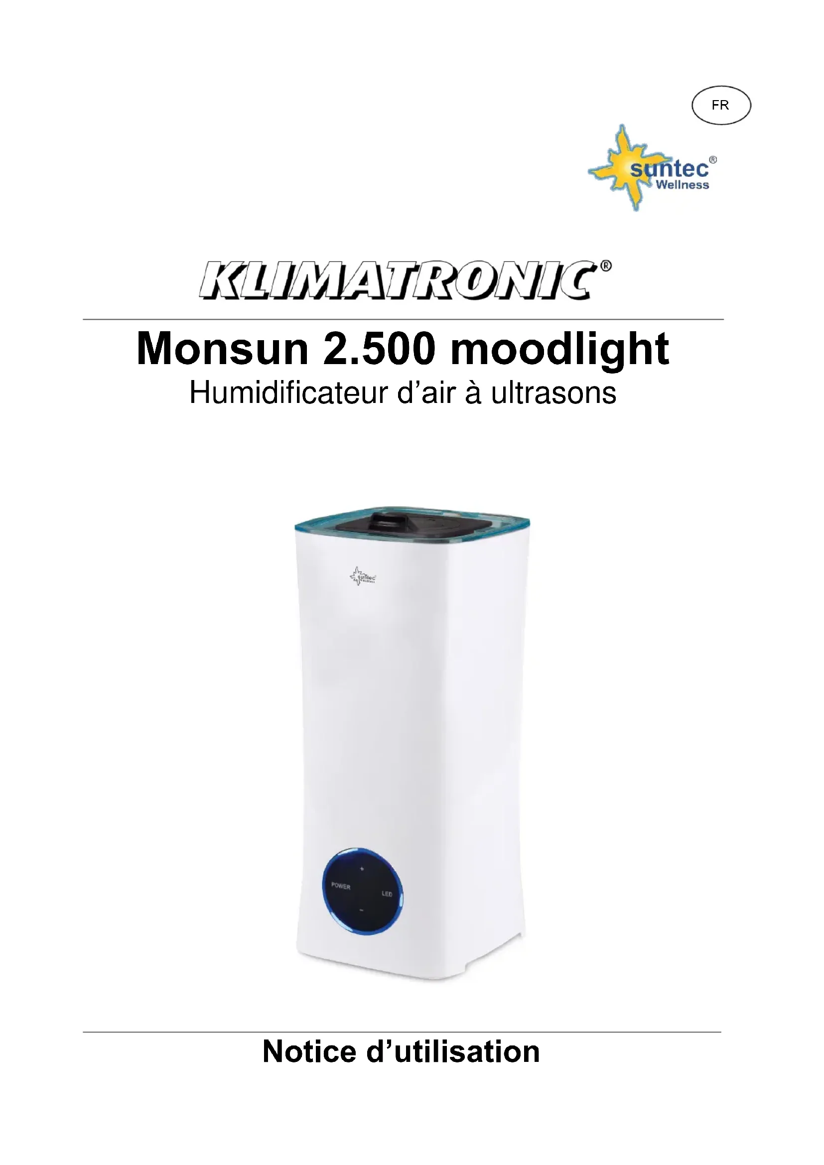 Monsun 2.500 Moodlight - Humidificateur SUNTEC - Notice d'utilisation et mode d'emploi gratuit