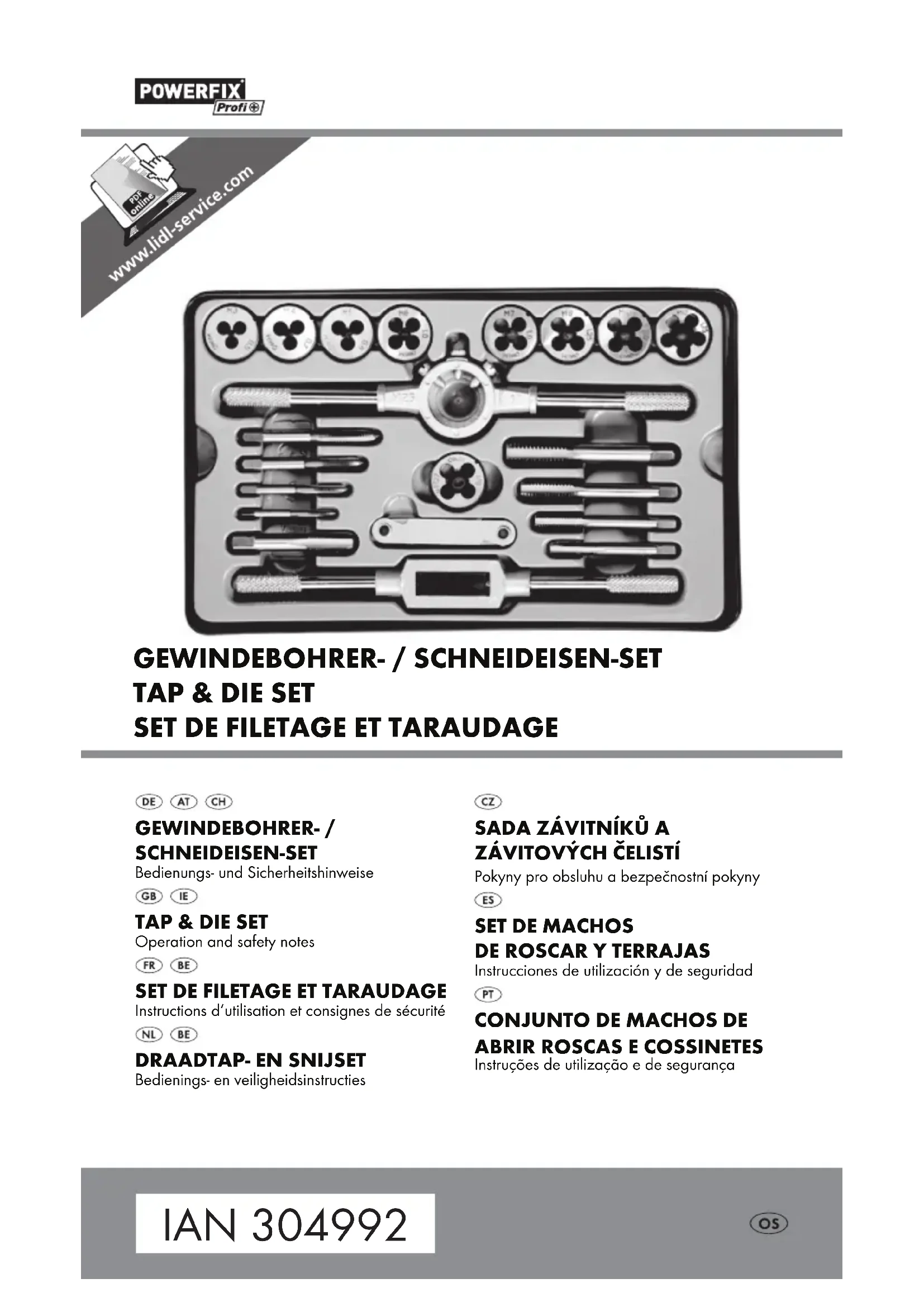 § Introduction Nous vous félicitons pour l‘achat de votre nouveau produit. Vous avez opté pour un produit de grande qualité. Avant la première mise en service, vous devez vous familiariser avec toutes les fonctions du produit. Veuillez lire attentivement le mode d’emploi ci-dessous et les consignes de sécurité. N’utilisez le produit que pour l’usage décrit et les domaines d’application cités. Conserver ces instructions dans un lieu sûr. Si vous donnez le produit à des tiers, remettez-leur également la totalité des documents. § Utilisation conventionnelle Ce produit sert à la réalisation de filetages intérieurs et extérieurs. Peuvent être réalisés aussi bien des filetages métriques que des filetages en pouces. Ne pas utiliser le produit ou ses composants en tant qu‘embout pour un appareil électrique ! L‘usage de ce produit est strictement manuel. Une autre utilisation que celle décrite ci-dessus ou une modification du produit n‘est pas permise et peut mener à des blessures et / ou à un endommagement du produit. Le fabricant n‘assume aucune responsabilité pour les dommages causés suite à une utilisation contraire à celle décrite. Le produit n‘est pas destiné à l‘utilisation professionnelle. § Description des pièces et éléments