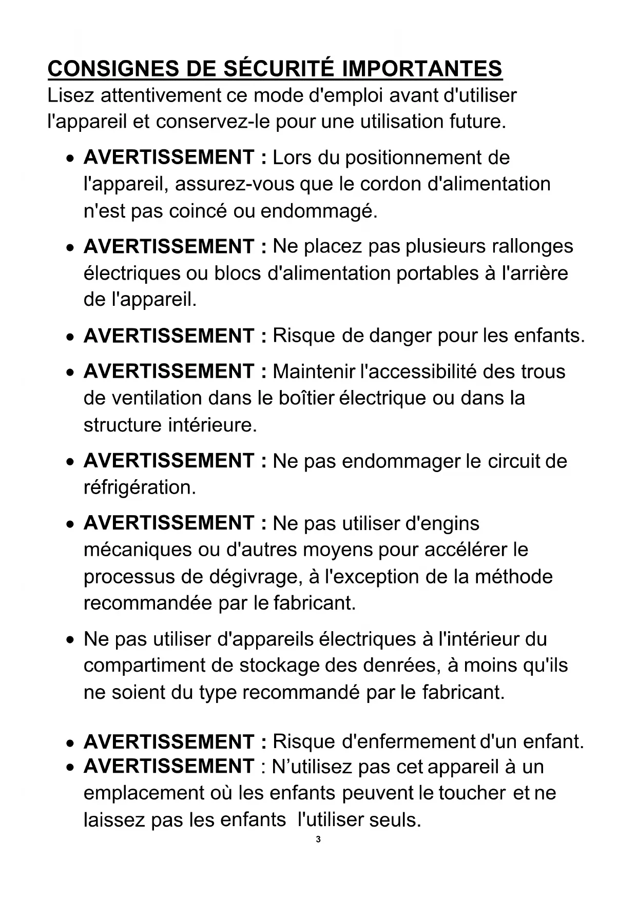 enlever des articles des appareils réfrigérants. Cet appareil peut être utilisé par des enfants âgés d'au moins