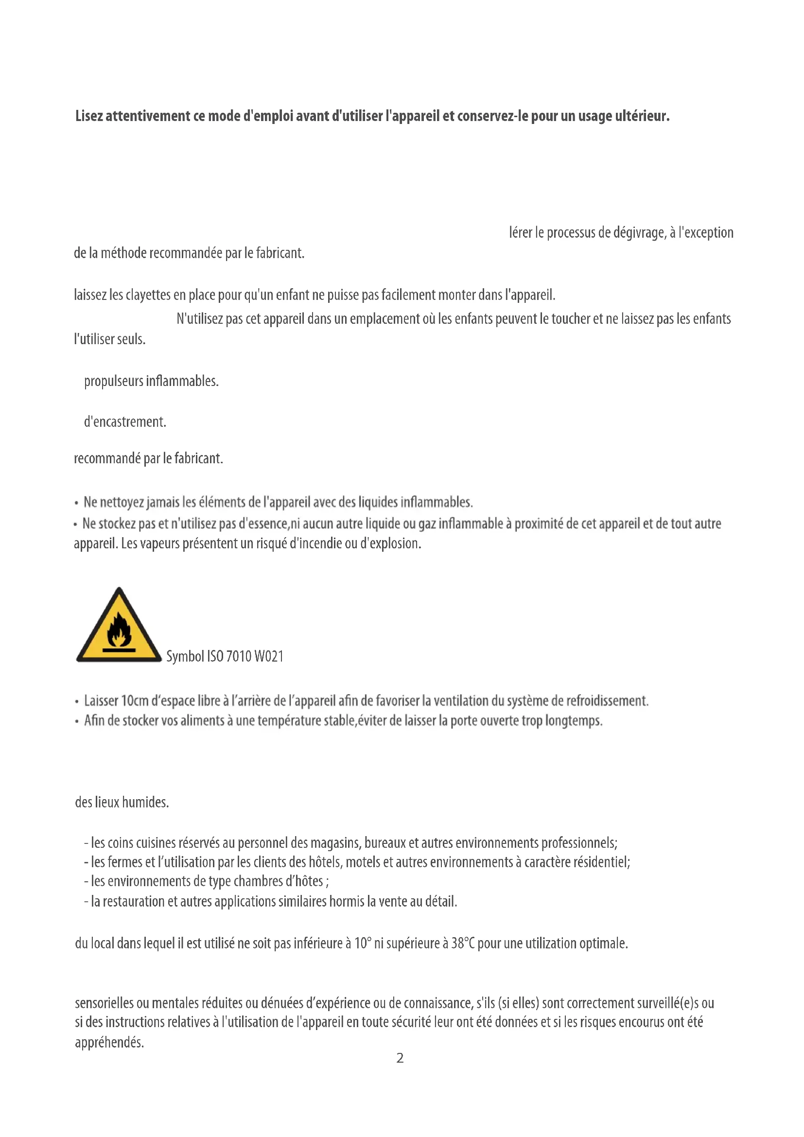 | Cet apparéil est conçu pour être utilisé à une température ambiente comprise entre +10°C et +38°C | |