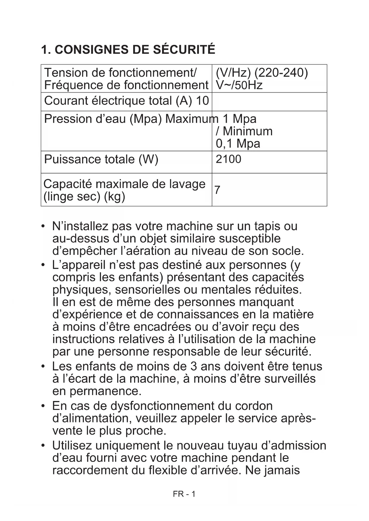 - Utilisez votre machine uniquement pour le linge FR - 7désigné comme approprié pour le lavage par le fabricant.