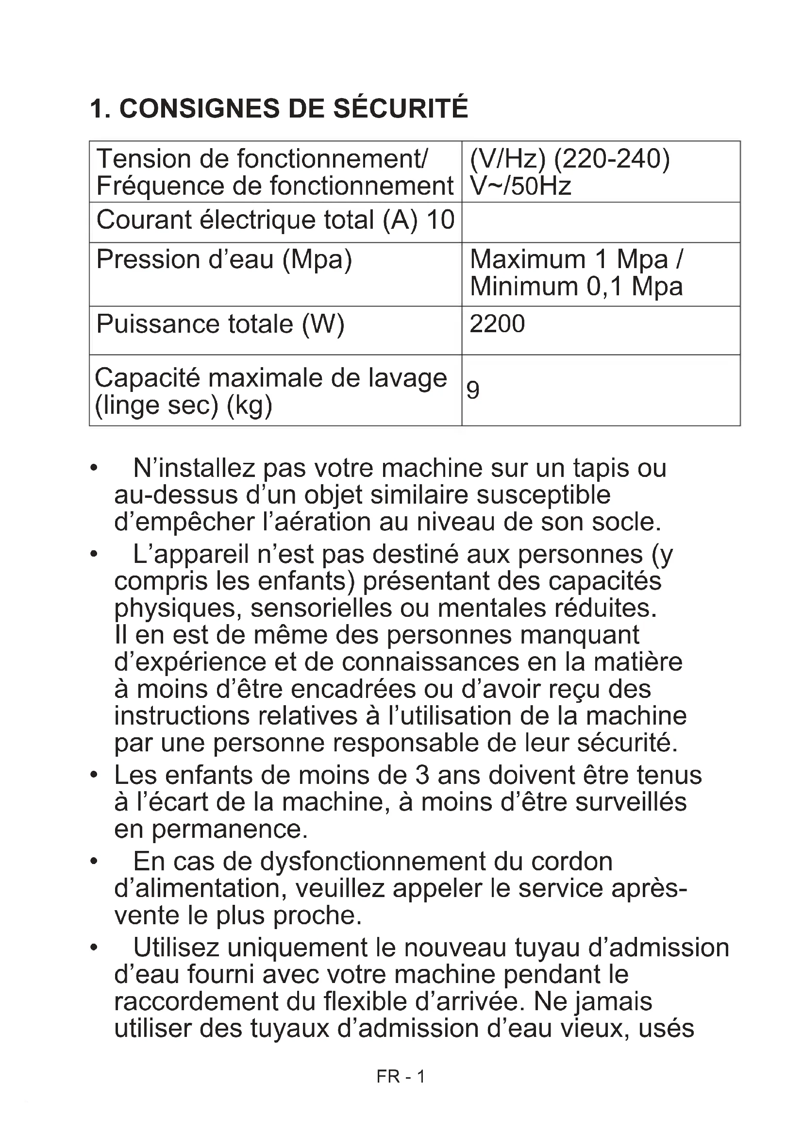 1. CONSIGNES DE SÉCURITÉ ........................................................................................... .1