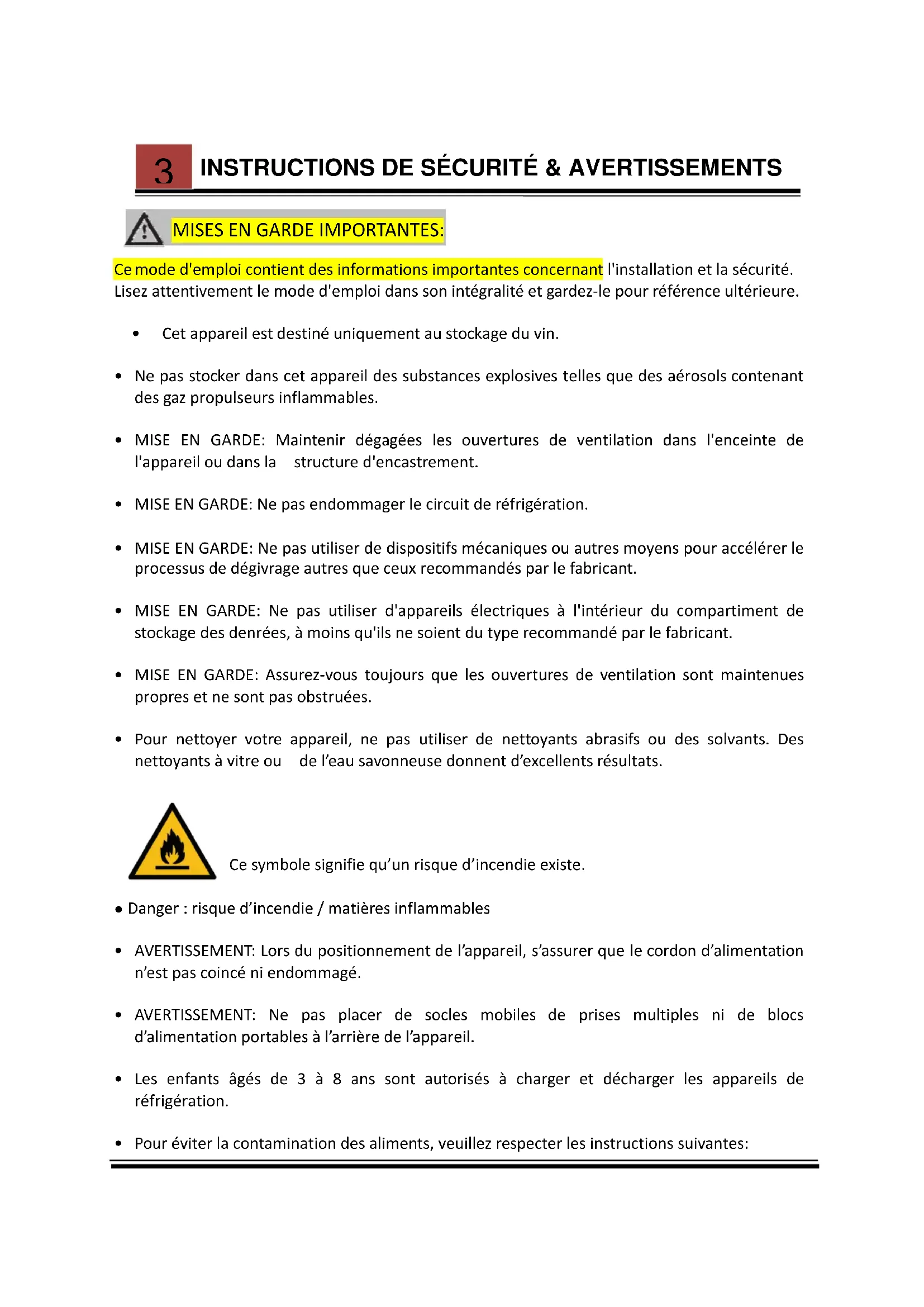 - Nepasinstallerd’autreappareilélectriquesurvotrecaveàvin.