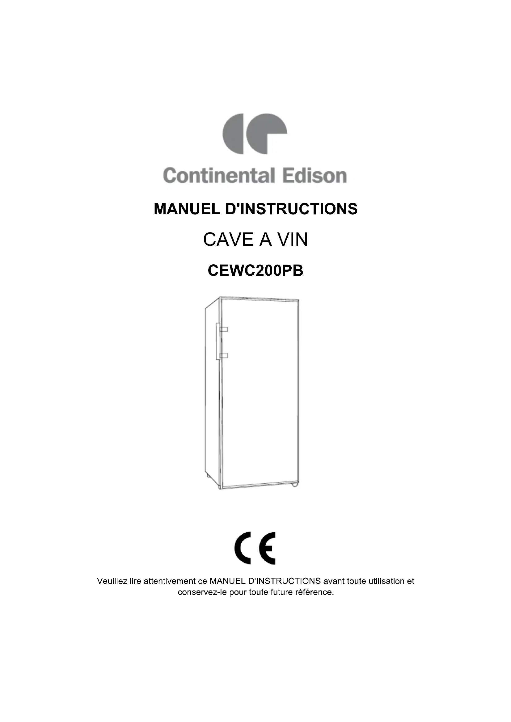 CEWC200PB - Cave à vin CONTINENTAL EDISON - Notice d'utilisation et mode d'emploi gratuit