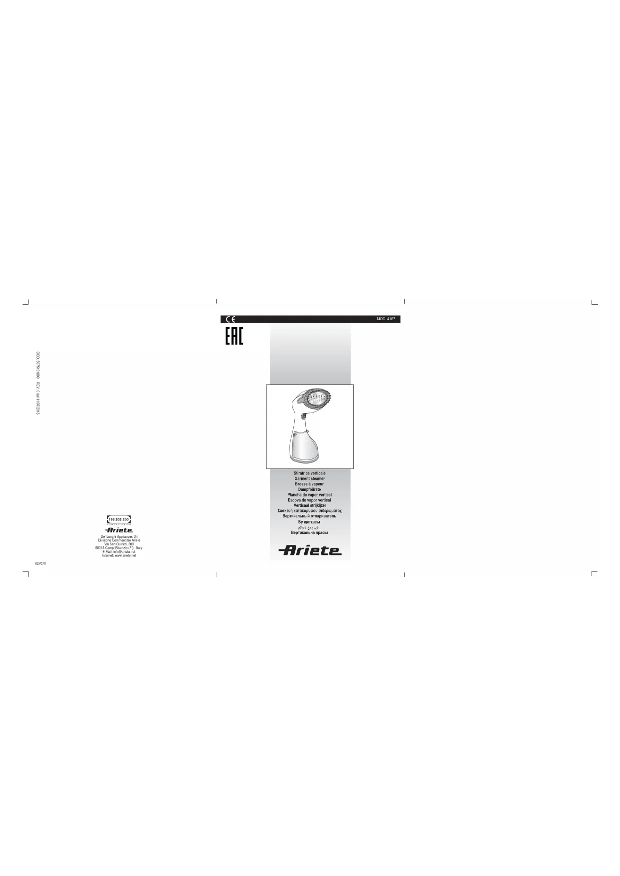 Retrouvez gratuitement la notice de l'appareil 4167 ARIETE au format PDF.