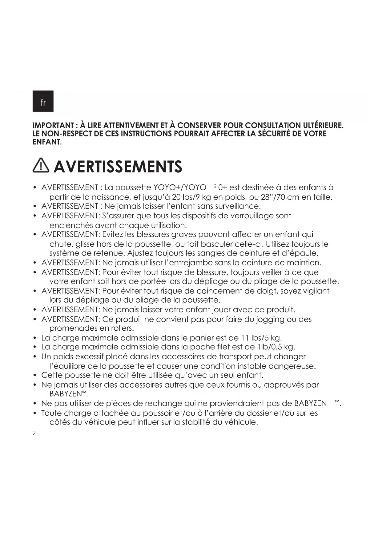 MODE D'EMPLOI YOYO² 0+ BabyZen