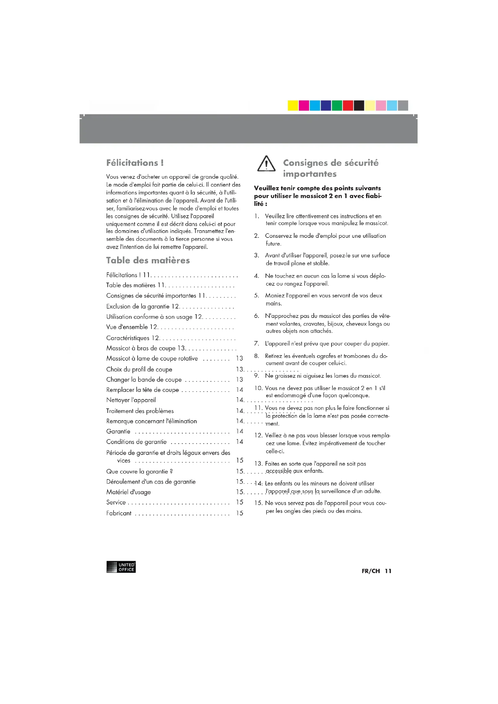 Étendue de la fourniture : 1 Massicot 2 en 1,1 mode d‘emploi