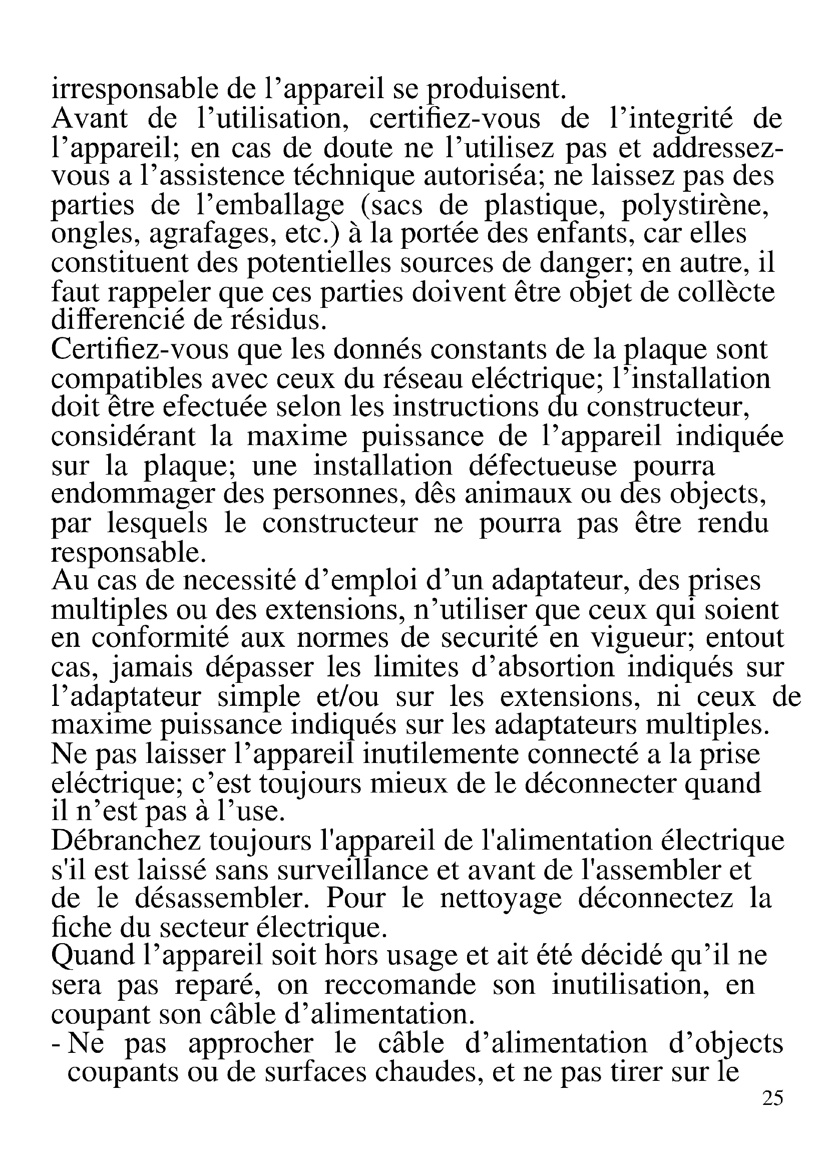 - Déroulez le cordon d'alimentation sur toute sa longueur avant de brancher l'appareil au réseau d'alimentation électrique.