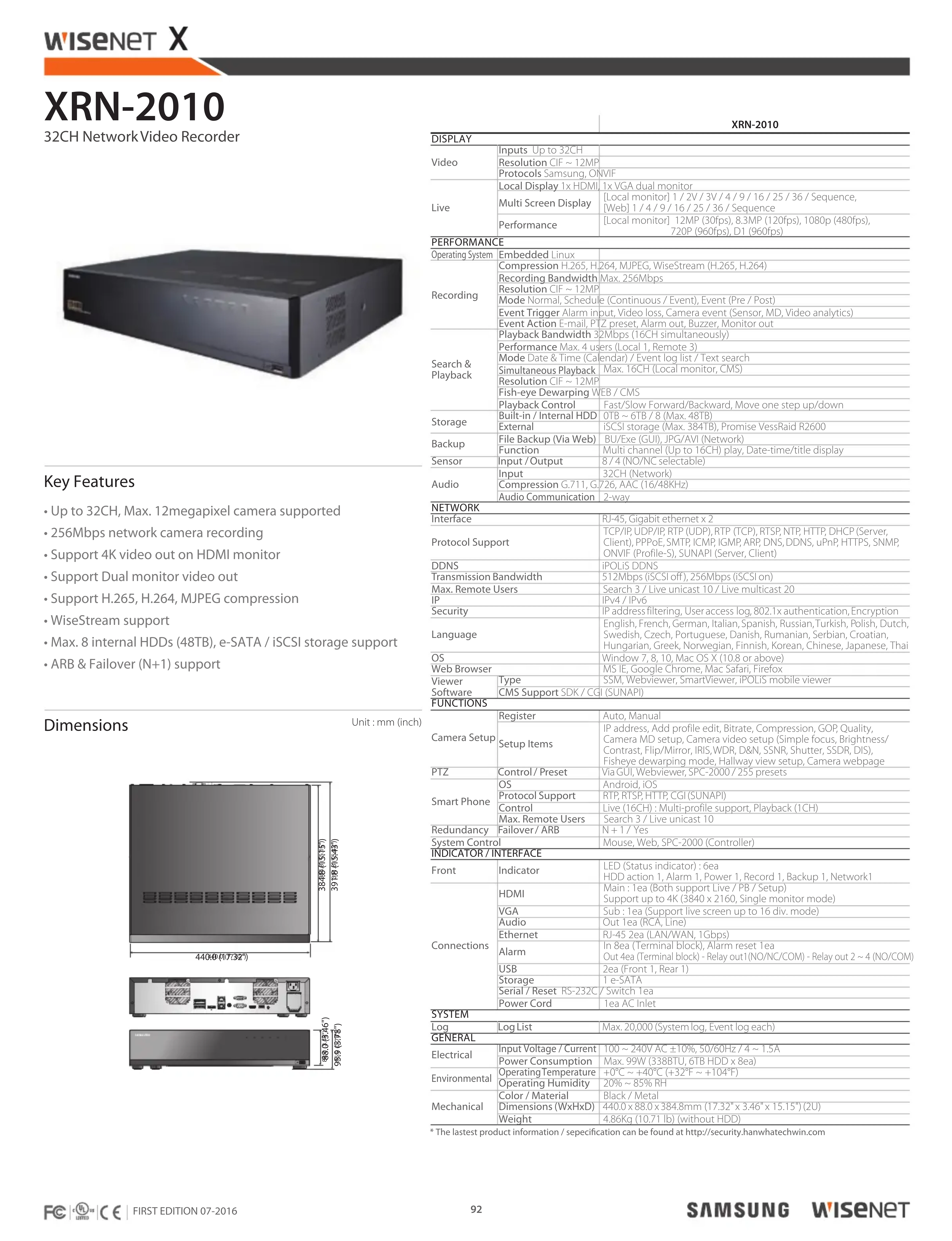 Retrouvez gratuitement la notice de l'appareil WiseNet X XRN2010 Hanwha au format PDF.
