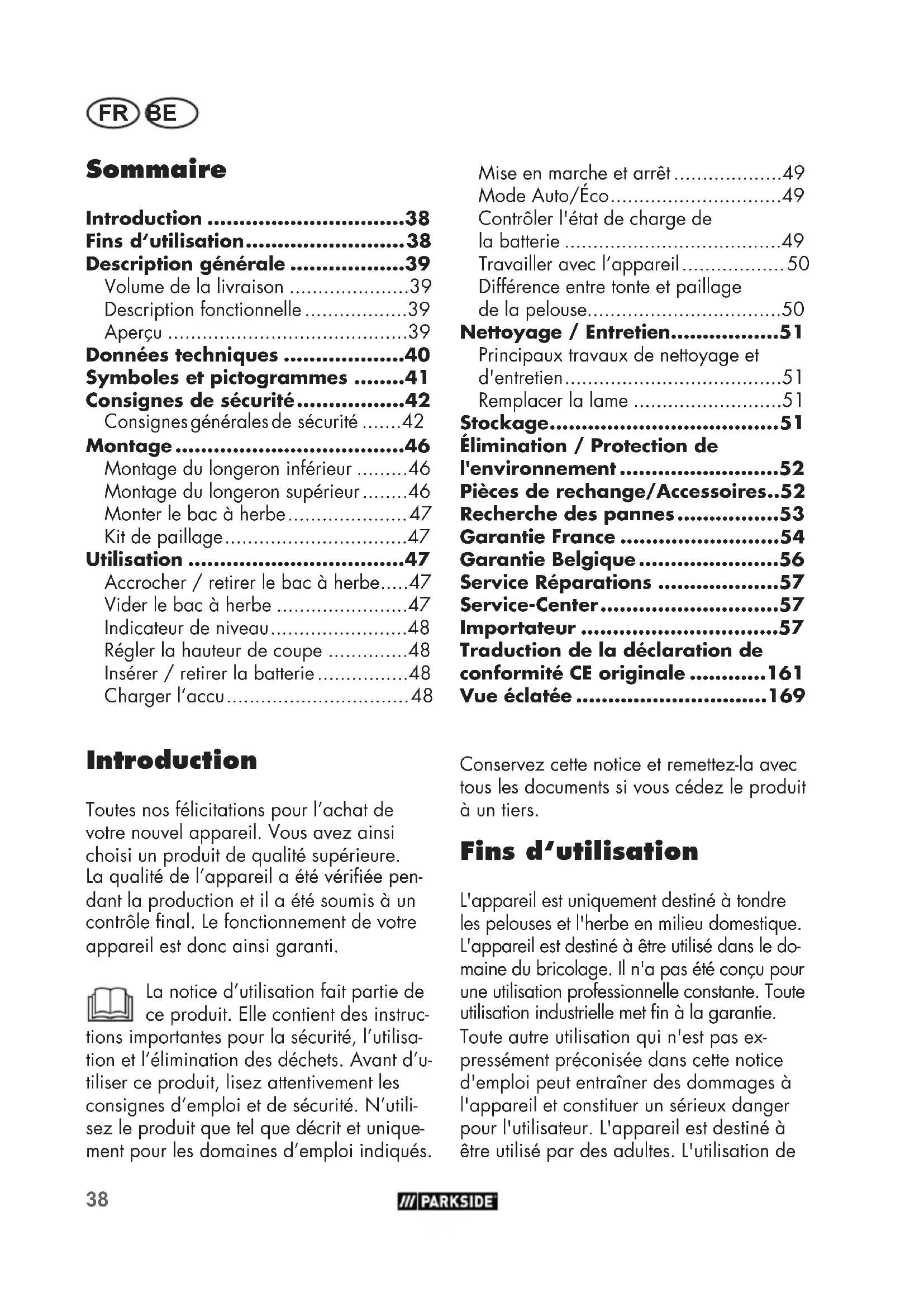 - Replace the blade38 FR BE Sommaire Introduction p. 38