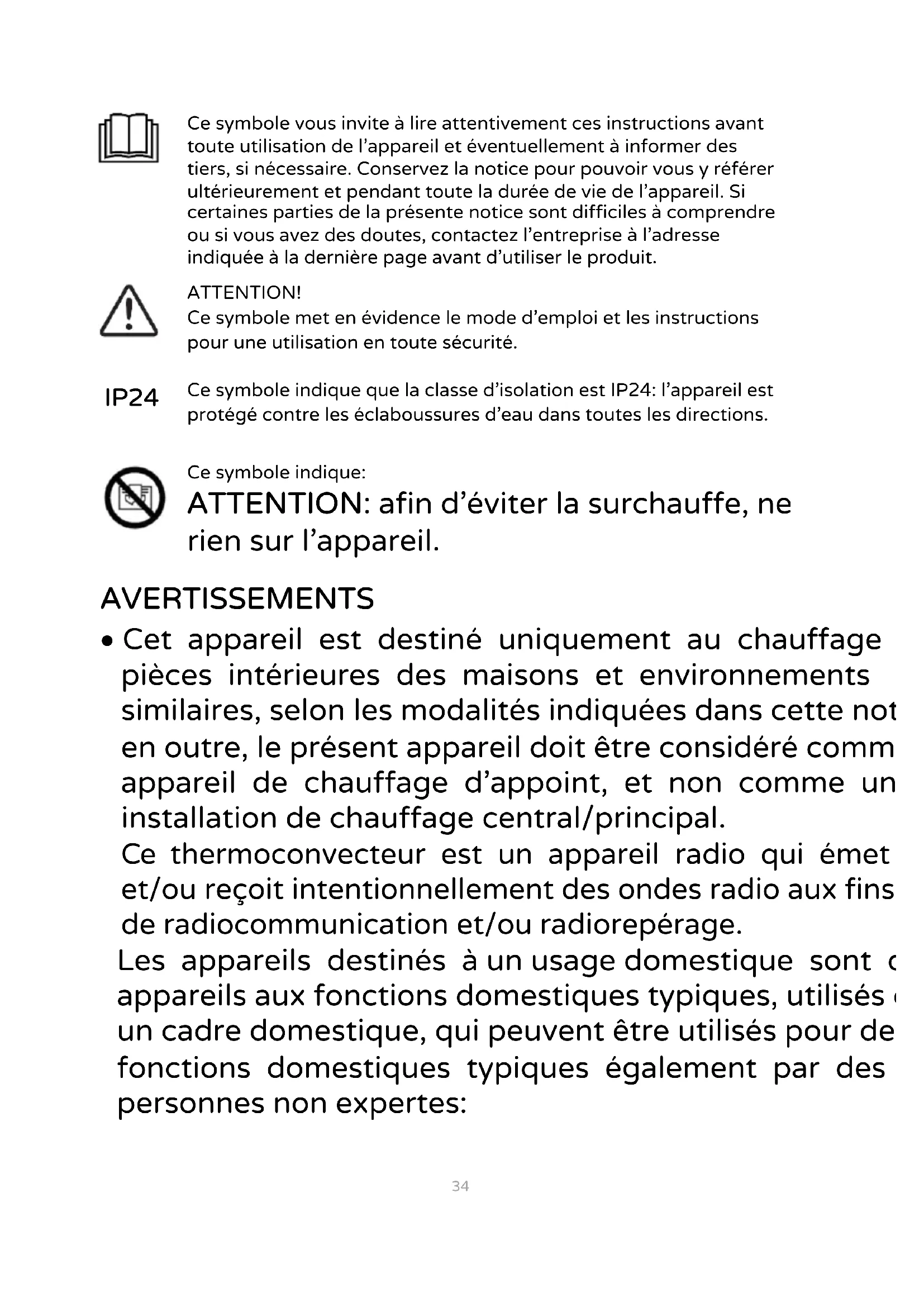 Ce thermoconvecteur est un appareil radio qui émet et/ou reçoit intentionnellement des ondes radio aux fins de radiocommunication et/ou radiopérage.