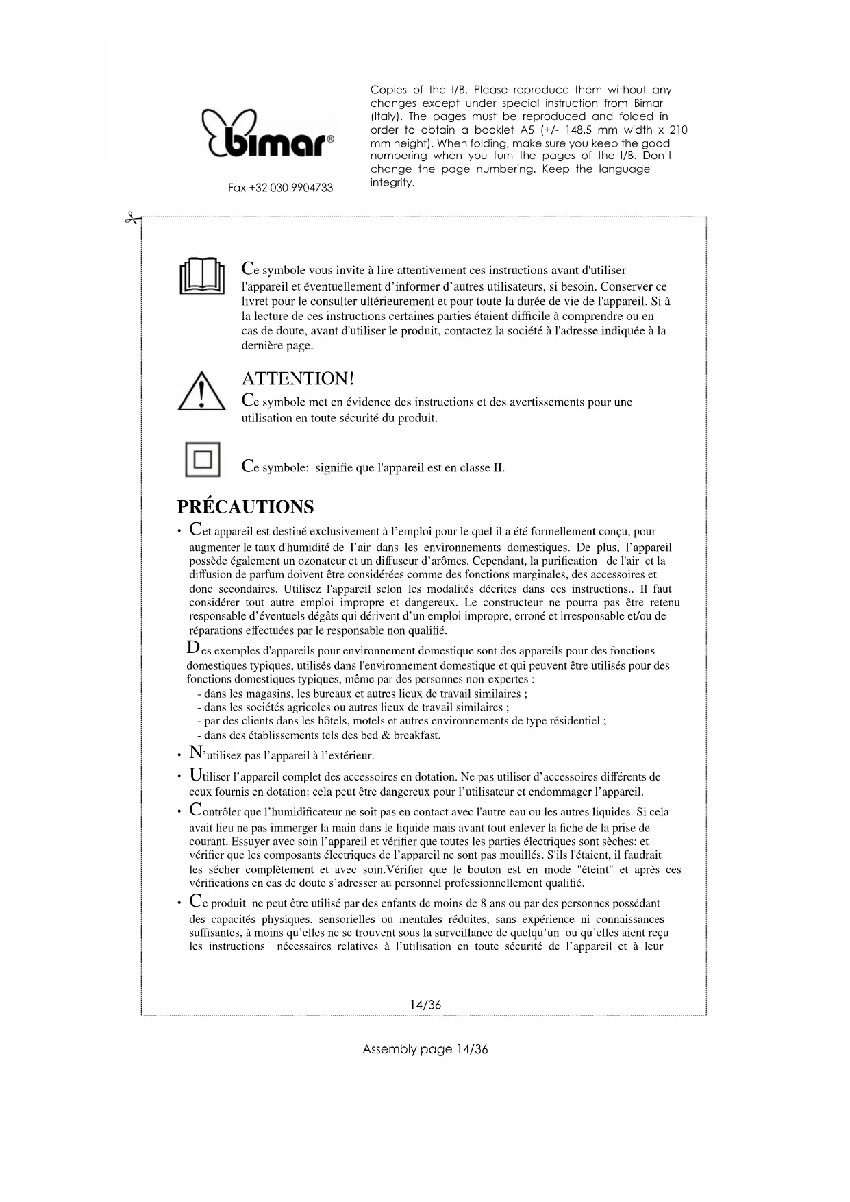 UM4 - Humidificateur Bimar - Notice d'utilisation et mode d'emploi gratuit