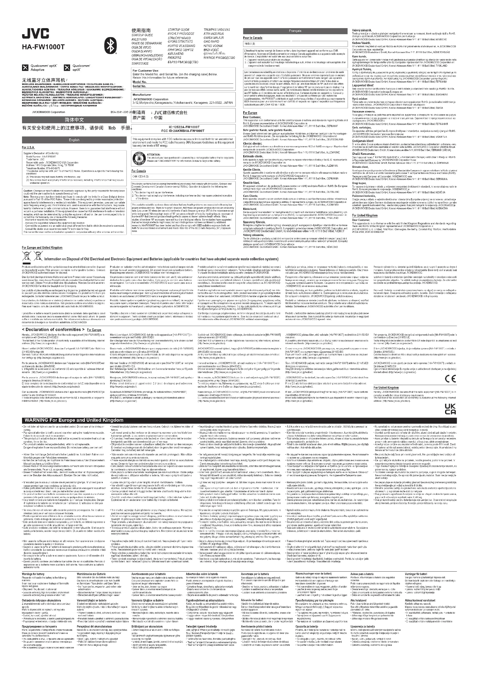 HAFW1000T - Ecouteur JVC - Notice d'utilisation et mode d'emploi gratuit