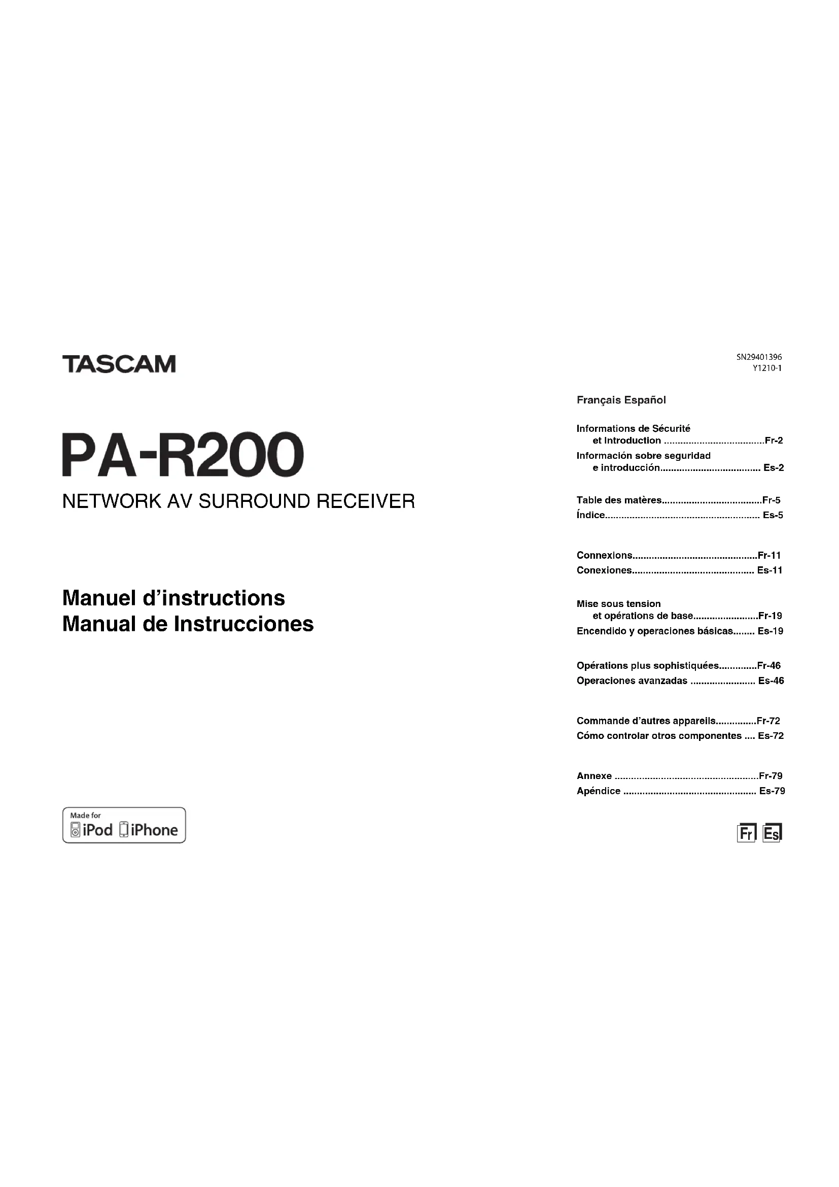 PAR200 - Recepteur TASCAM - Notice d'utilisation et mode d'emploi gratuit