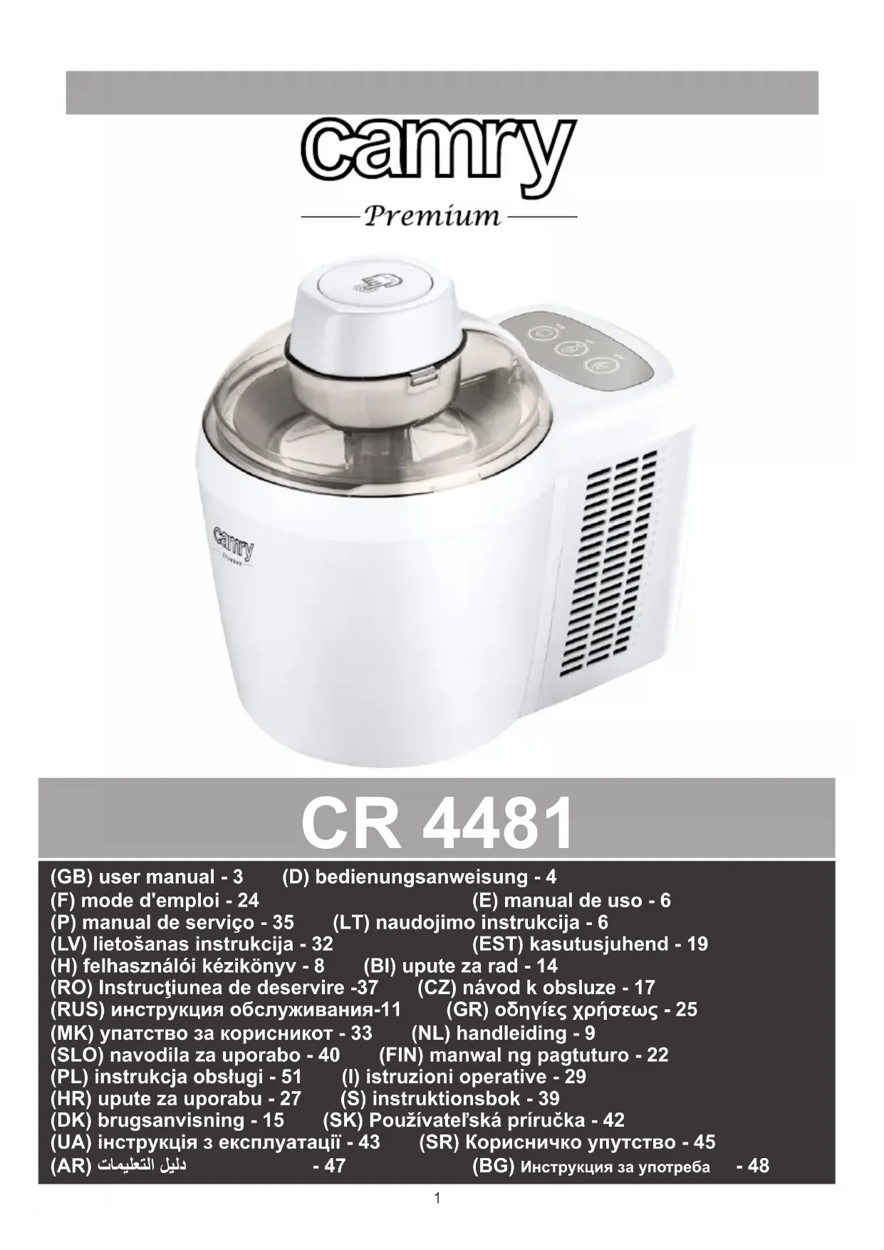 CR 4481 - Machine à glace CAMRY - Notice d'utilisation et mode d'emploi gratuit
