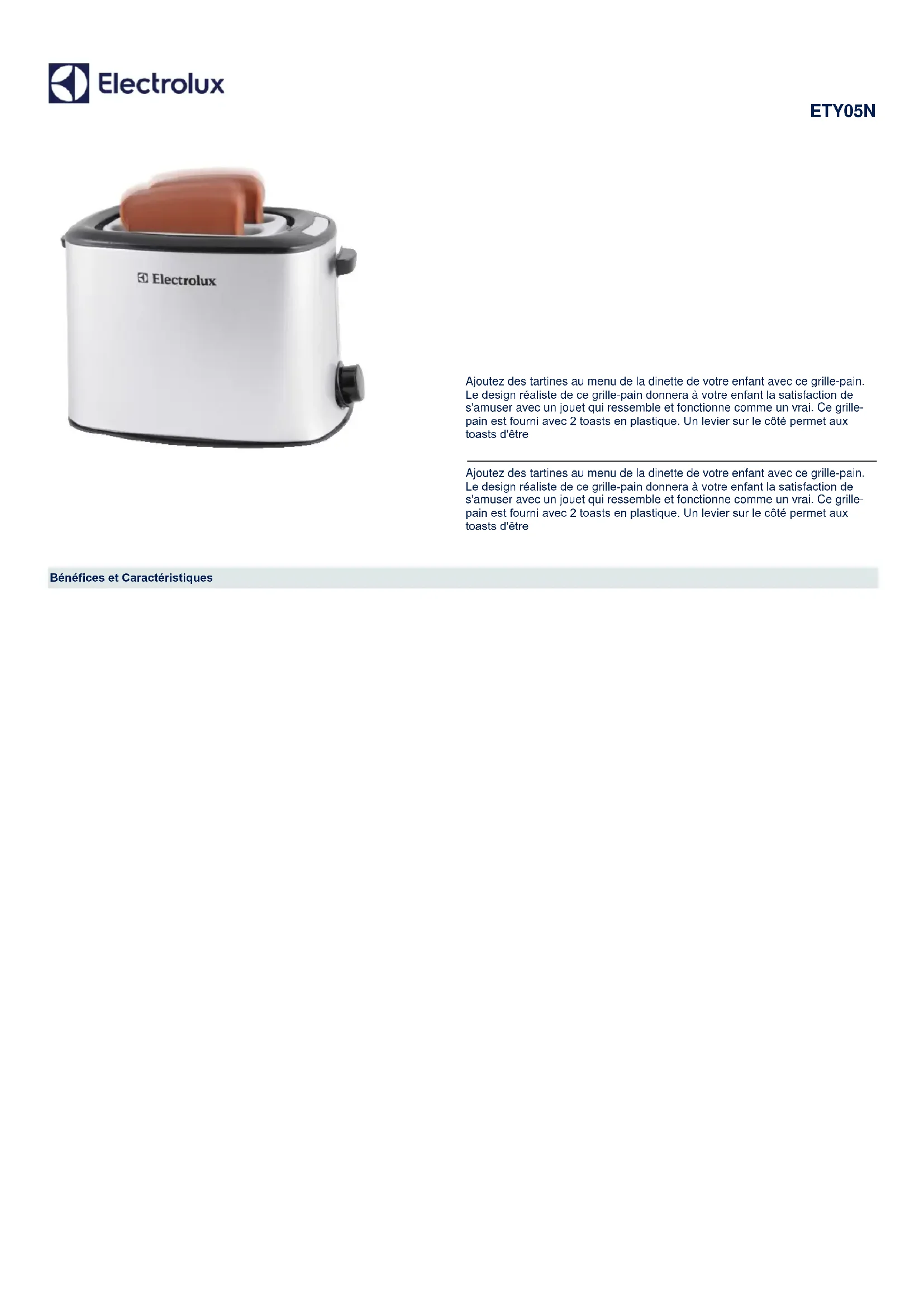 ETY05N - Grille-pain ELECTROLUX - Notice d'utilisation et mode d'emploi gratuit