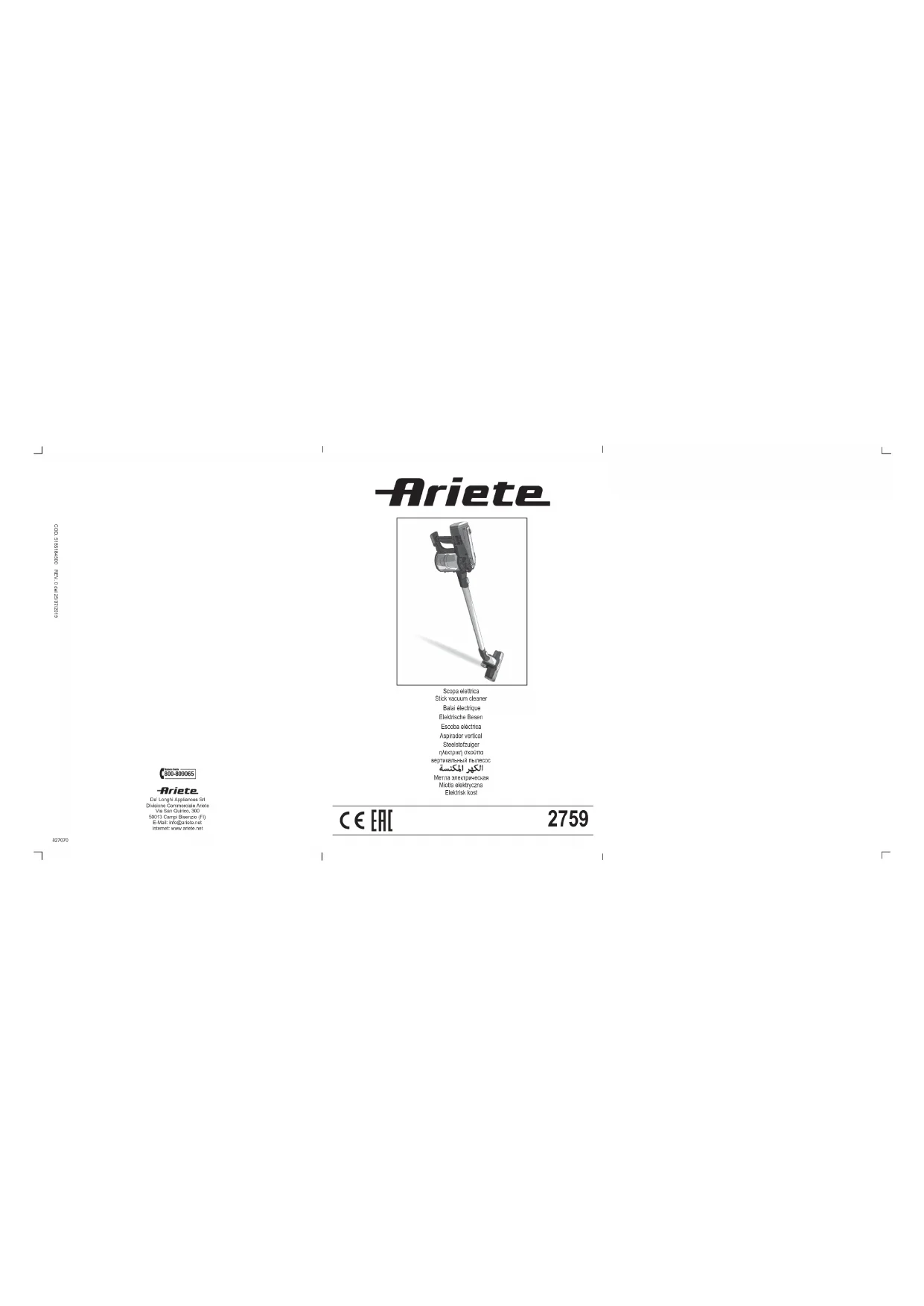 Handy Force RBT 2759 - Balai ARIETE - Notice d'utilisation et mode d'emploi gratuit