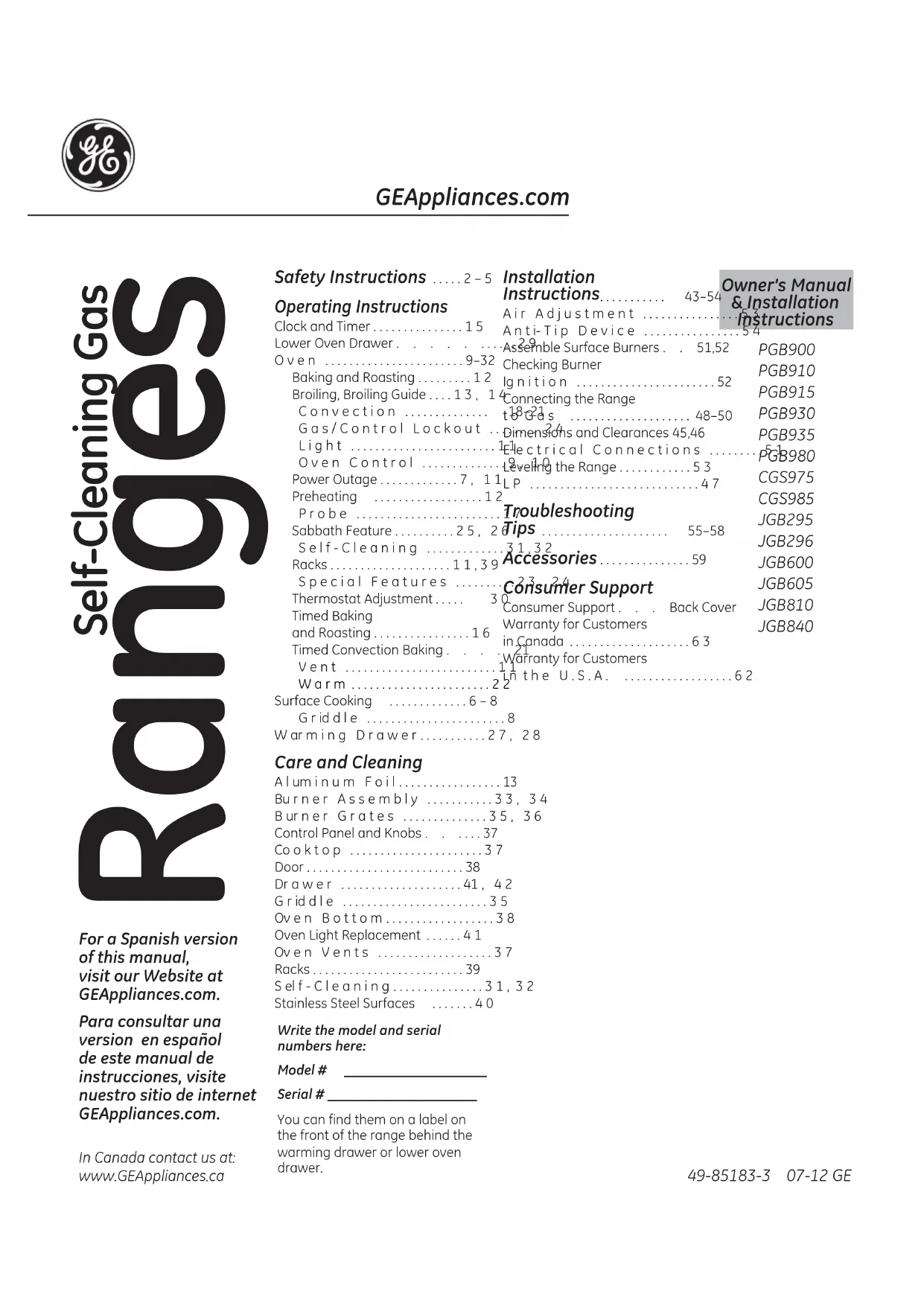 JGB296DETBB - Cuisinière GE - Notice d'utilisation et mode d'emploi gratuit