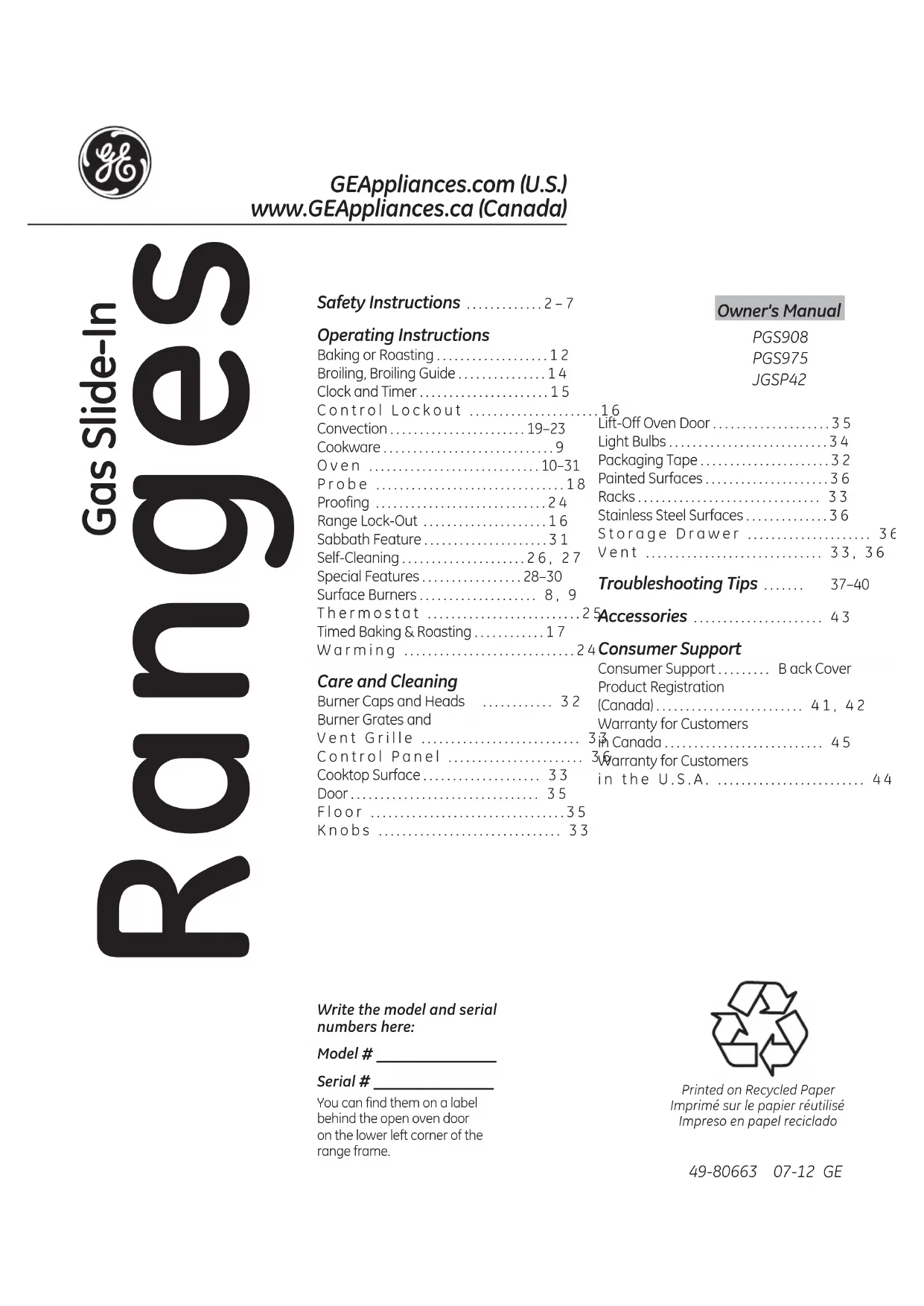 Retrouvez gratuitement la notice de l'appareil Profile PGS975SEPSS GE au format PDF.