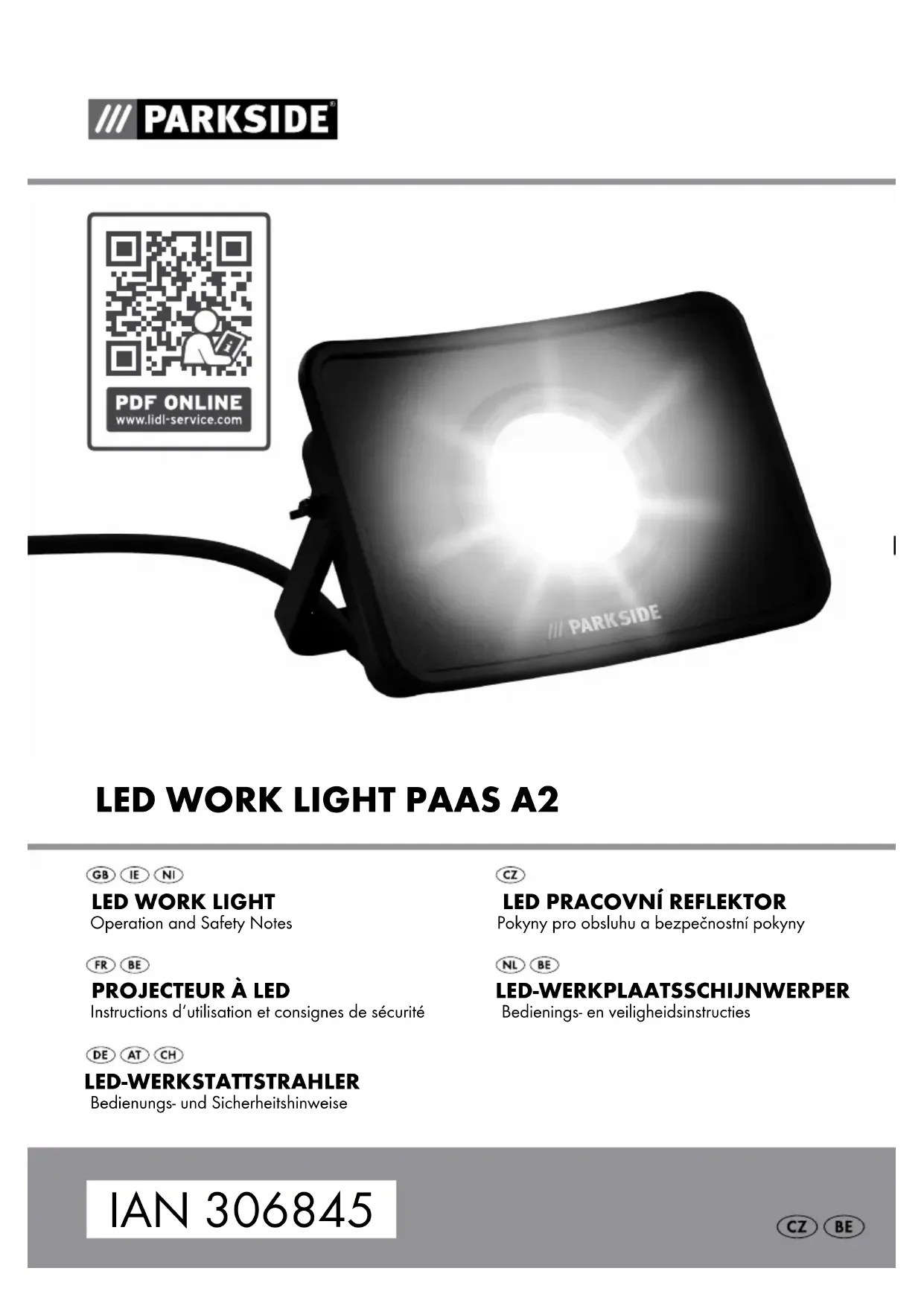 - Uniquement pour un usage à l'inté- rieur ! (uniquement HG04369-BS) Protégé contre les poussières et projections d'eau (IP54) pour les projecteurs d'atelier LED (sauf prises) Classe de protection I Protégé contre les projections d'eau (sauf prises) Le produit est conçu pour résister à de fortes sollicitations mécaniques Durée de vie des LED Projecteur à LED PAAS A2 Introduction Nous vous félicitons pour l‘achat de votre nouveau produit. Vous avez opté pour un produit de grande qualité. Le mode d‘emploi fait partie intégrante de ce produit. Il contient des indications importantes pour la sécurité, l’utilisation et la mise au rebut. Veuillez lire consciencieusement toutes les indications d‘utilisation et de sécurité du produit. Ce produit doit uniquement être utilisé conformément aux ins- tructions et dans les domaines d‘application spéci- fiés. Lors d‘une cession à tiers, veuillez également remettre tous les documents. Utilisation conforme Ce produit est destiné à l‘éclairage des espaces *intérieurs et extérieurs. Le produit est uniquement destiné à une utilisation privée et non à une utilisation commerciale ou à d‘autres domaines d‘utilisation. Descriptif des pièces