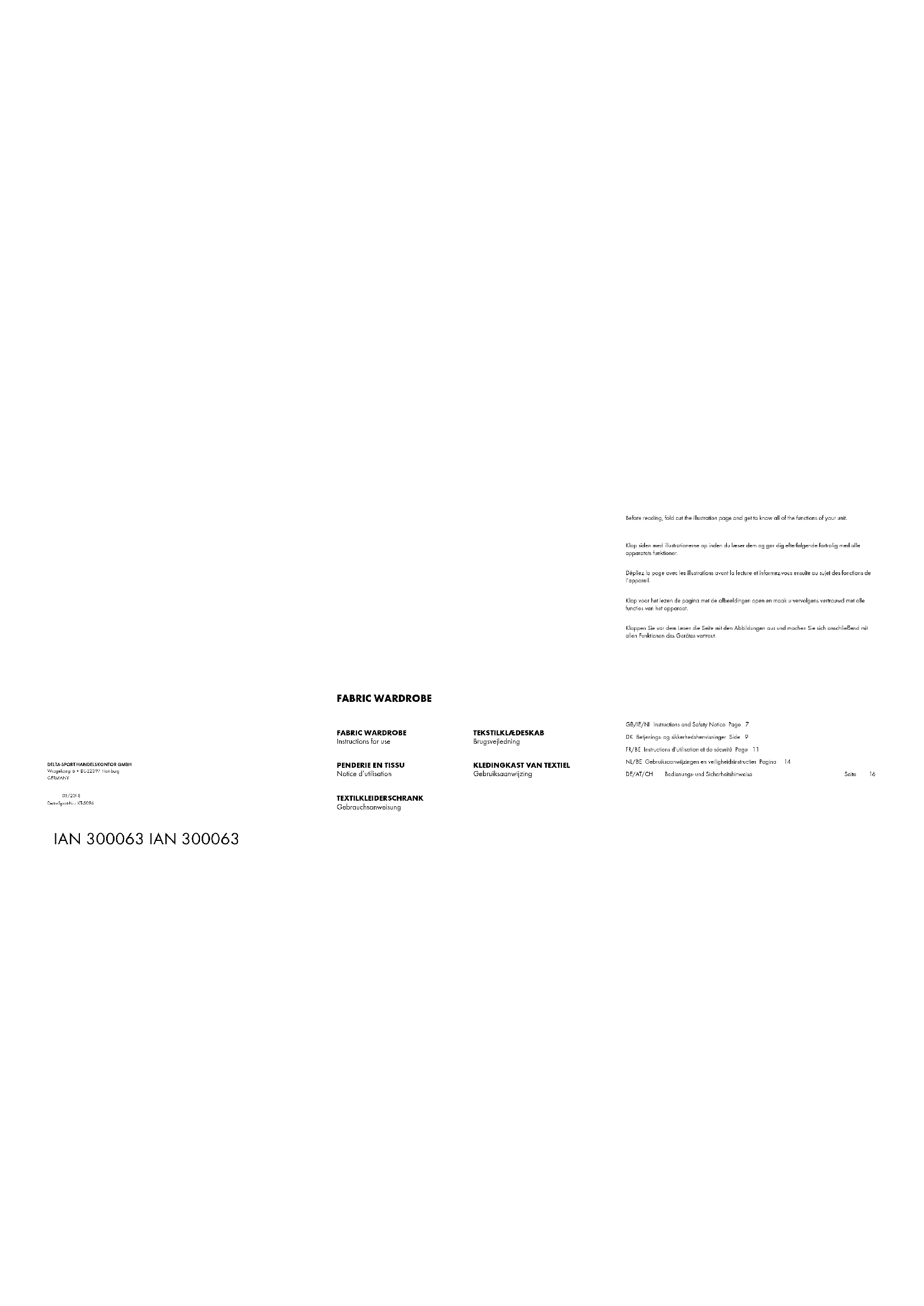 - s‘il présente les qualités qu‘un acheteur peut légitimement attendre eu égard aux déclarations publiques faites par le vendeur, par le producteur ou par son représentant, notam- ment dans la publicité ou l‘étiquetage ; 2° Ou s‘il présente les caractéristiques définies d‘un commun accord par les parties ou être pro- pre à tout usage spécial recherché par l‘acheteur, porté à la connaissance du vendeur et que ce dernier a accepté. Article L217-12 du Code de la consomma- tion L‘action résultant du défaut de conformité se prescrit par deux ans à compter de la délivrance du bien.13 Article 1641 du Code civil Le vendeur est tenu de la garantie à raison des défauts cachés de la chose vendue qui la rendent impropre à l‘usage auquel on la destine, ou qui diminuent tellement cet usage que l‘acheteur ne l‘aurait pas acquise, ou n‘en aurait donné qu‘un moindre prix, s‘il les avait connus. Article 1648 1er alinéa du Code civil L‘action résultant des vices rédhibitoires doit être intentée par l‘acquéreur dans un délai de deux ans à compter de la découverte du vice. Les pièces détachées indispensables à l’utilisation du produit sont disponibles pendant la durée de la garantie du produit. IAN : 300063 Service France Tel.: 0800 919270 E-Mail: deltasport@lidl.fr Service Belgique Tel.: 070 270 171 (0,15 EUR/Min.) E-Mail: deltasport@lidl.be FR/BE14 Hartelijk gefeliciteerd! Met de aankoop hebt u gekozen voor een hoog- waardig product. Maak u daarom voor de eerste ingebruikname vertrouwd met het product. Lees hiervoor deze gebruiksaanwijzing aandachtig door. Gebruik het product alleen zoals beschreven en uitsluitend voor de aangegeven doeleinden. Bewaar de handleiding zorgvuldig. Als u het product aan derden geeft, dient u ook deze documenten te overhandigen. In het leveringspakket inbe- grepen (afb. A) 1 x kleerkast, gedemonteerd (A - L) 1 x set montagemateriaal (b1 - N) 1 x gebruiksaanwijzing Technische gegevens