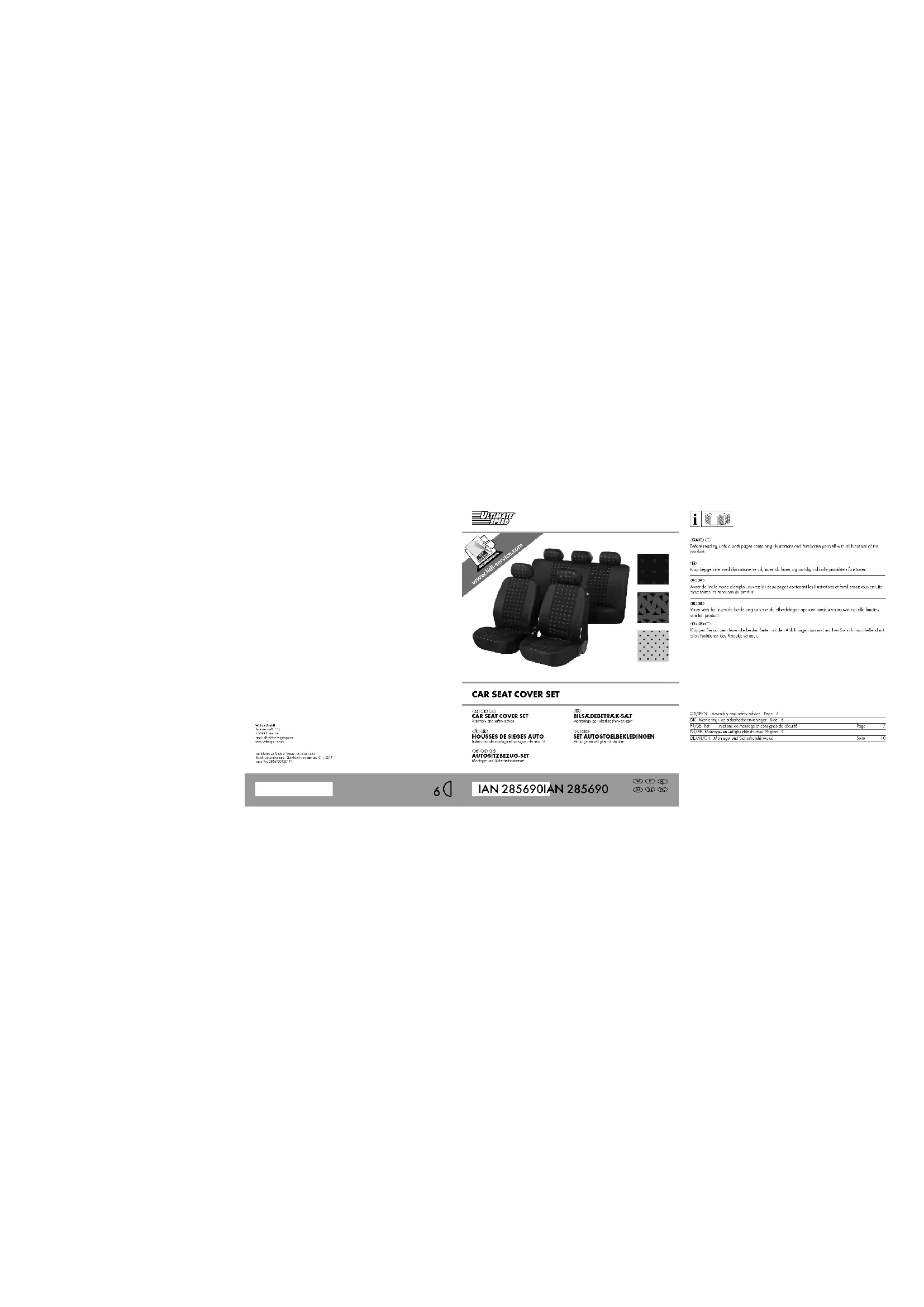 Instructions de montage et consignes de sécurité AUTOSITZBEZUG-SET Montage- und Sicherheitshinweise