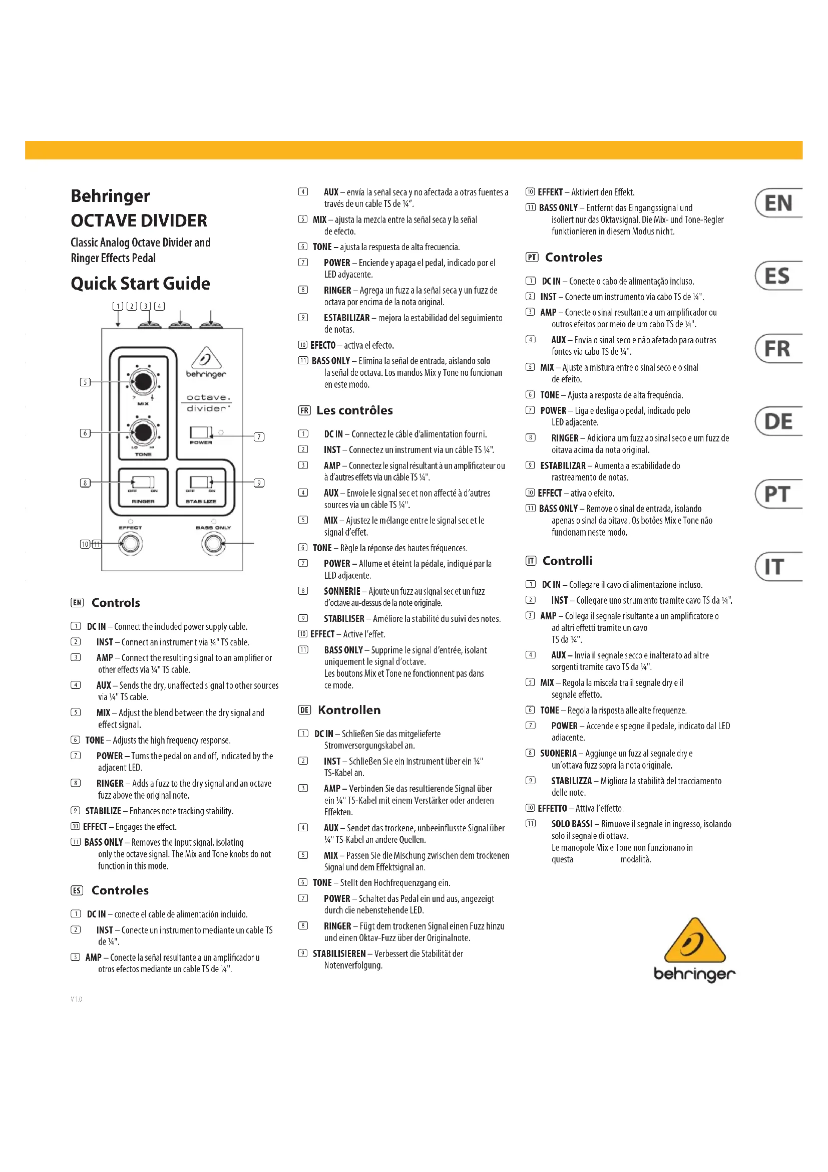 Octave Divider - Guitare BEHRINGER - Notice d'utilisation et mode d'emploi gratuit