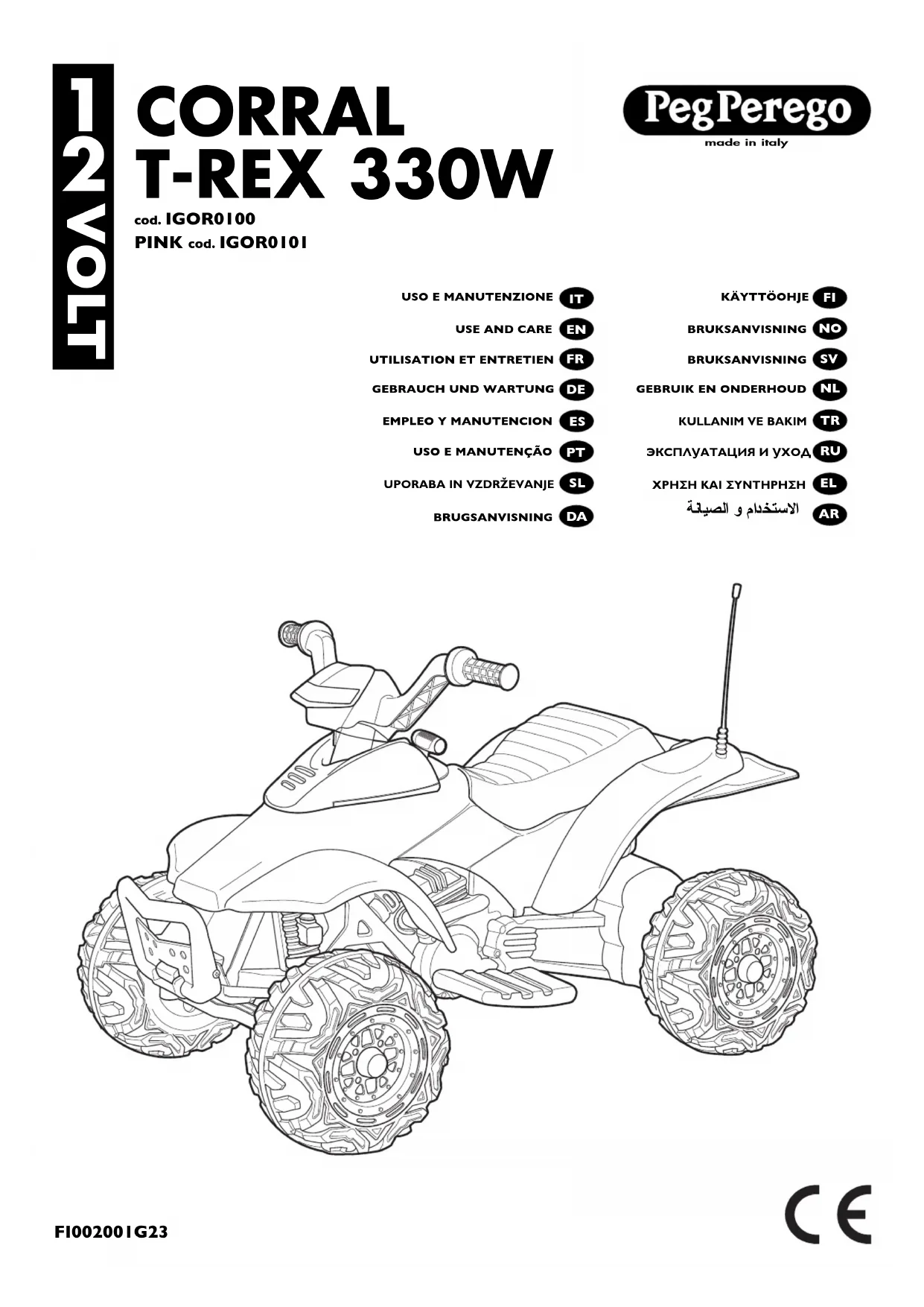 Retrouvez gratuitement la notice de l'appareil Corral TRex 330W PEG PEREGO au format PDF.