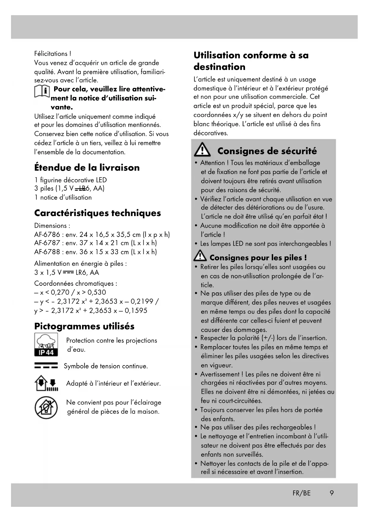 - Les lampes LED ne sont pas interchangeables ! Consignes pour les piles !