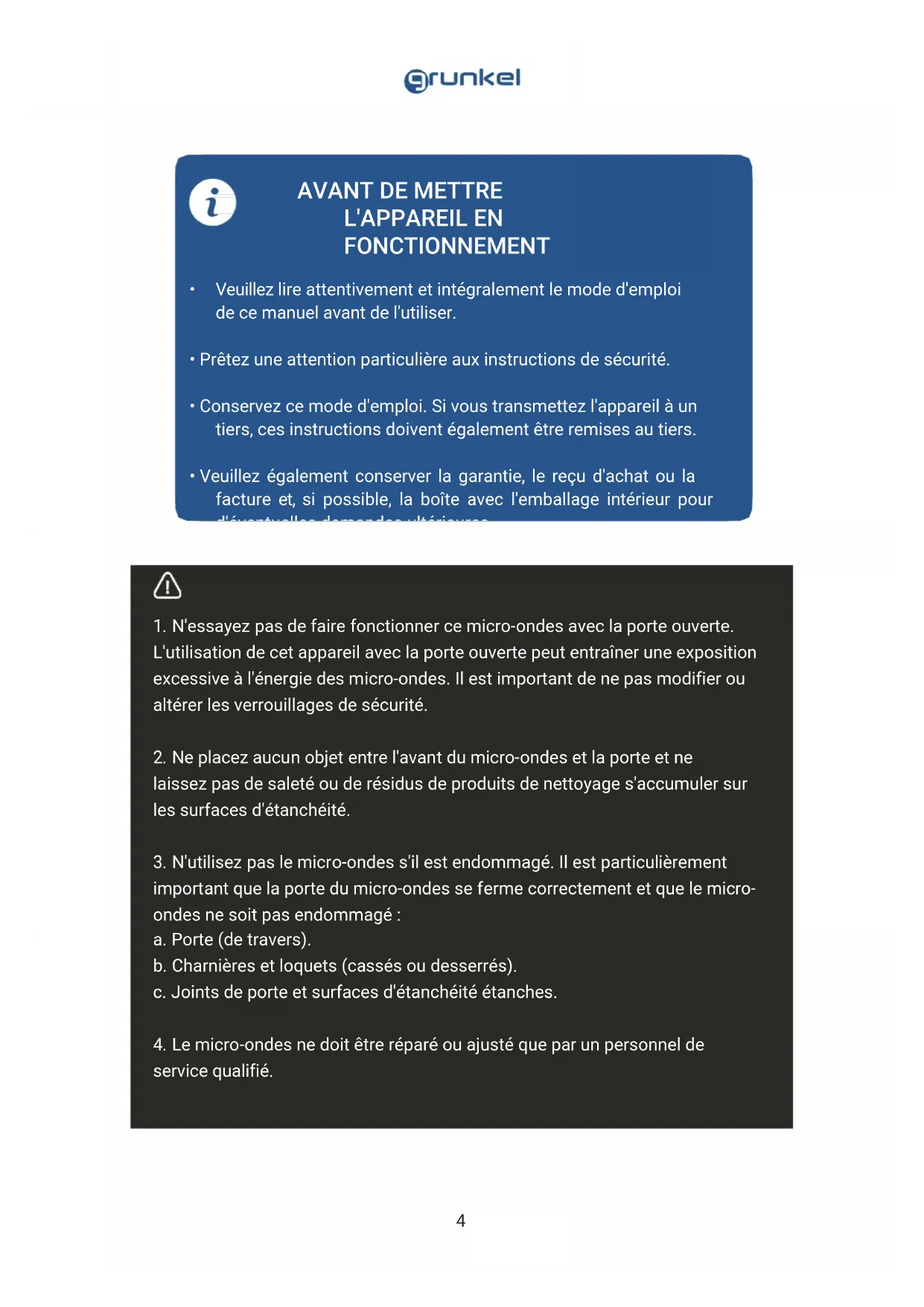 Retrouvez gratuitement la notice de l'appareil MW20IG Grunkel au format PDF.