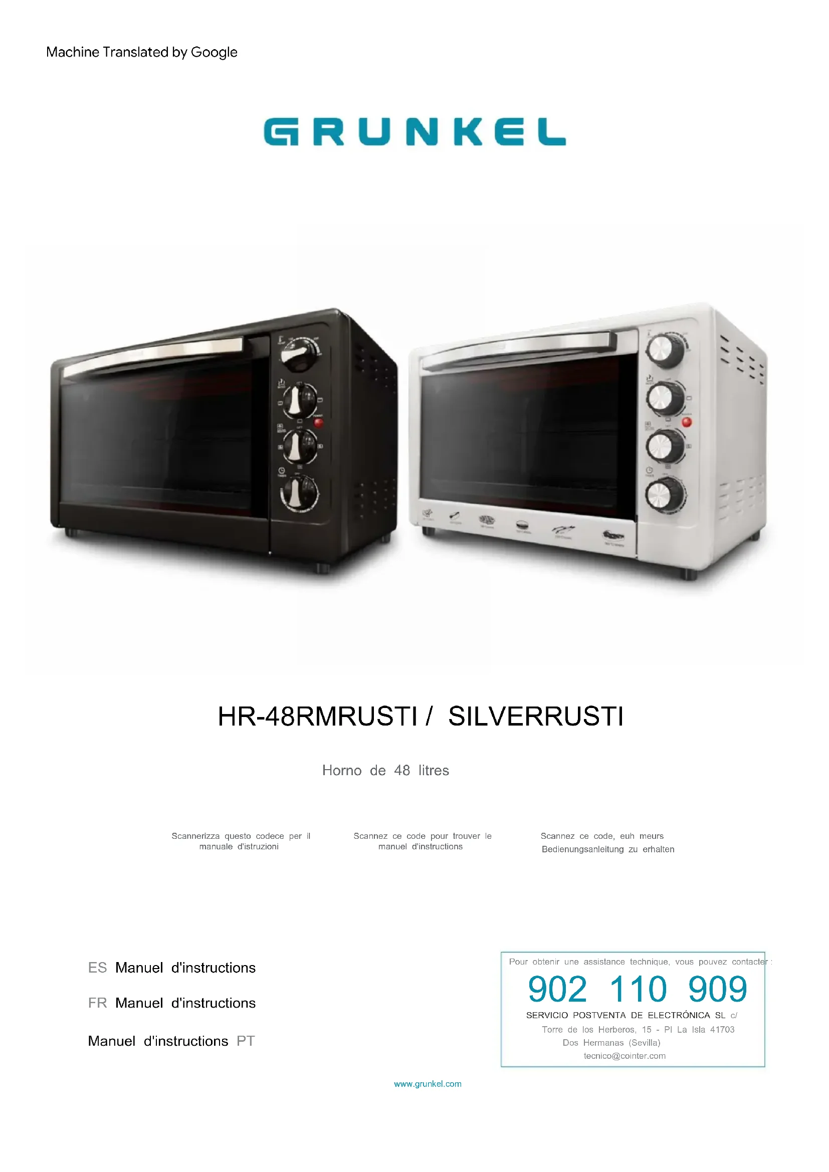 Retrouvez gratuitement la notice de l'appareil HR48RMRUSTI Grunkel au format PDF.