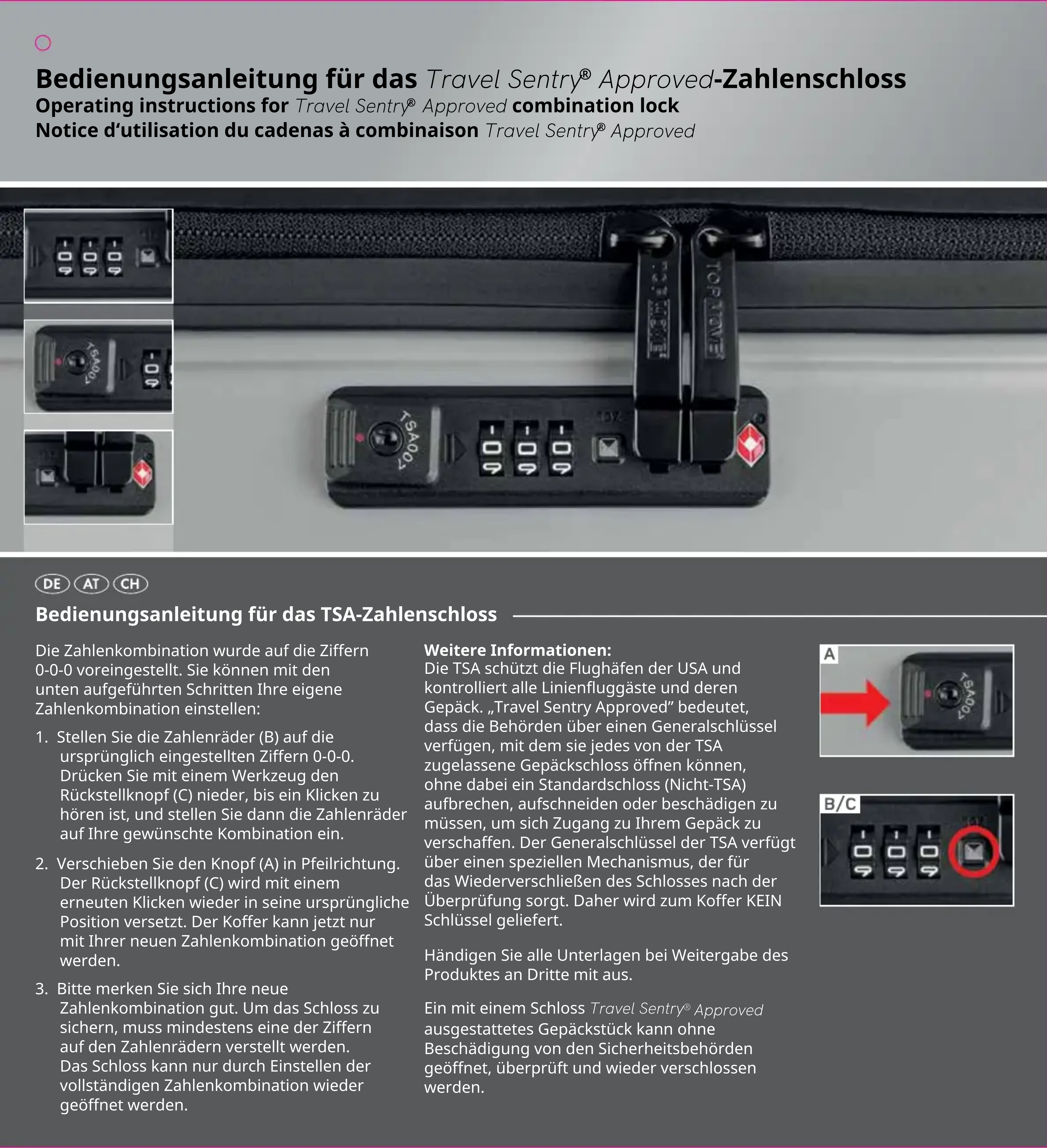 Approved combination lock Notice d‘utilisation du cadenas à combinaison Travel Sentry
