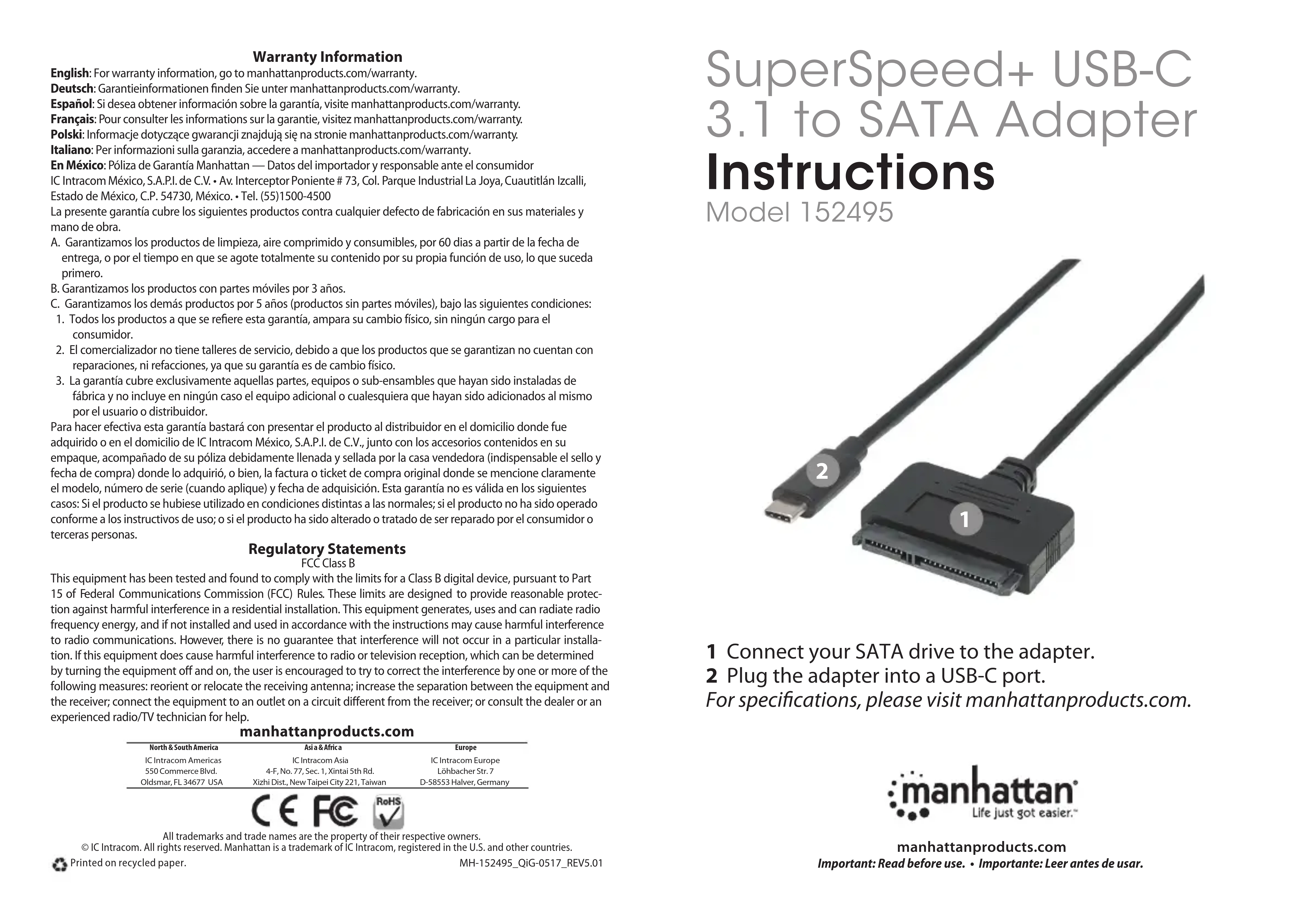 Retrouvez gratuitement la notice de l'appareil 152495 MANHATTAN au format PDF.