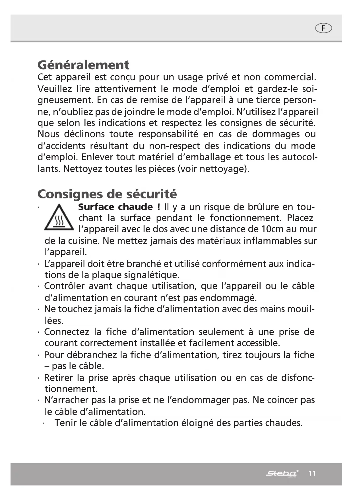 Retrouvez gratuitement la notice de l'appareil WP 130 STEBA au format PDF.