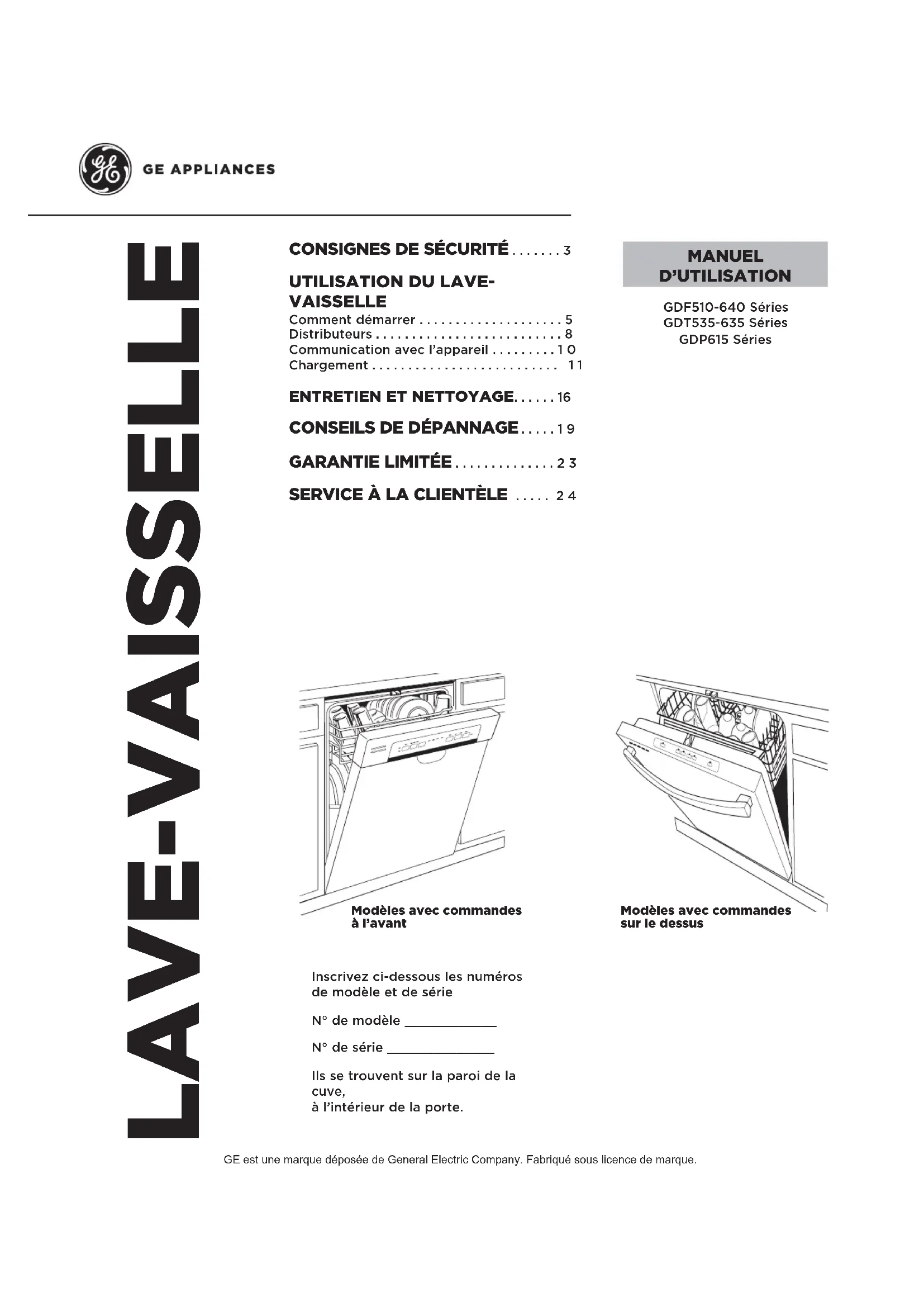 Garantie limitée du lave-vaisse GE appliances