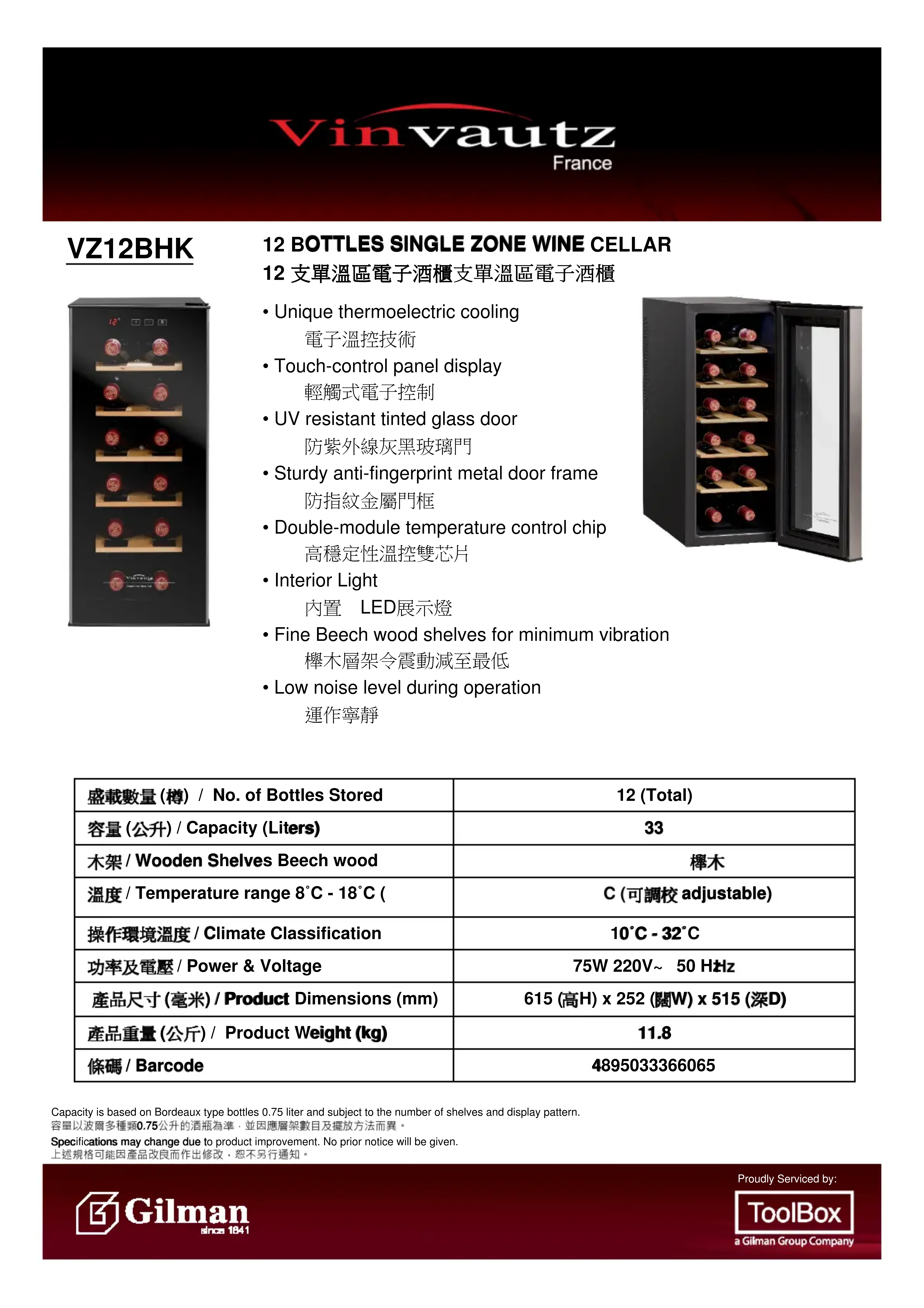 Retrouvez gratuitement la notice de l'appareil VZ12BHK Vinvautz au format PDF.