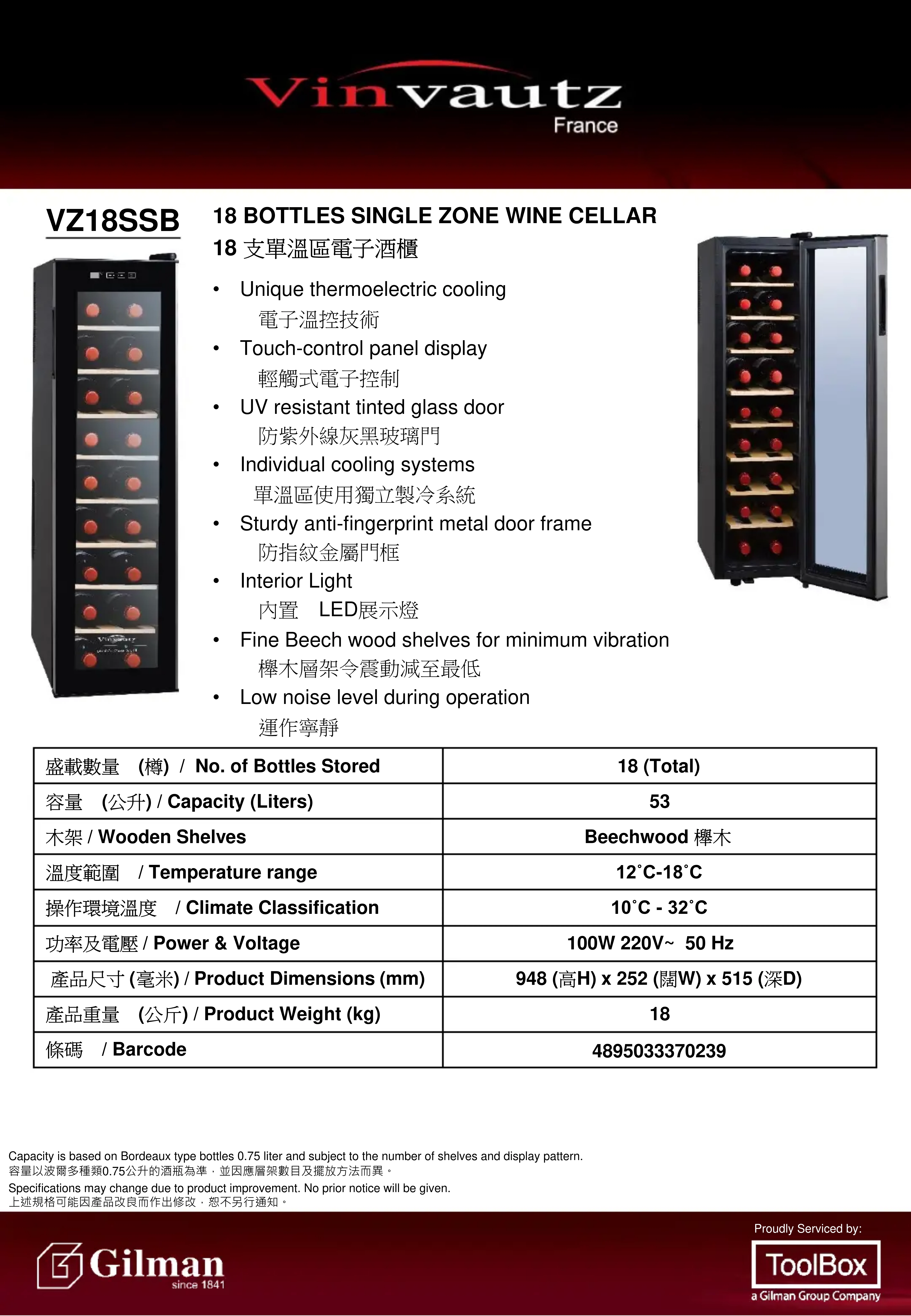 Retrouvez gratuitement la notice de l'appareil VZ18SSB Vinvautz au format PDF.
