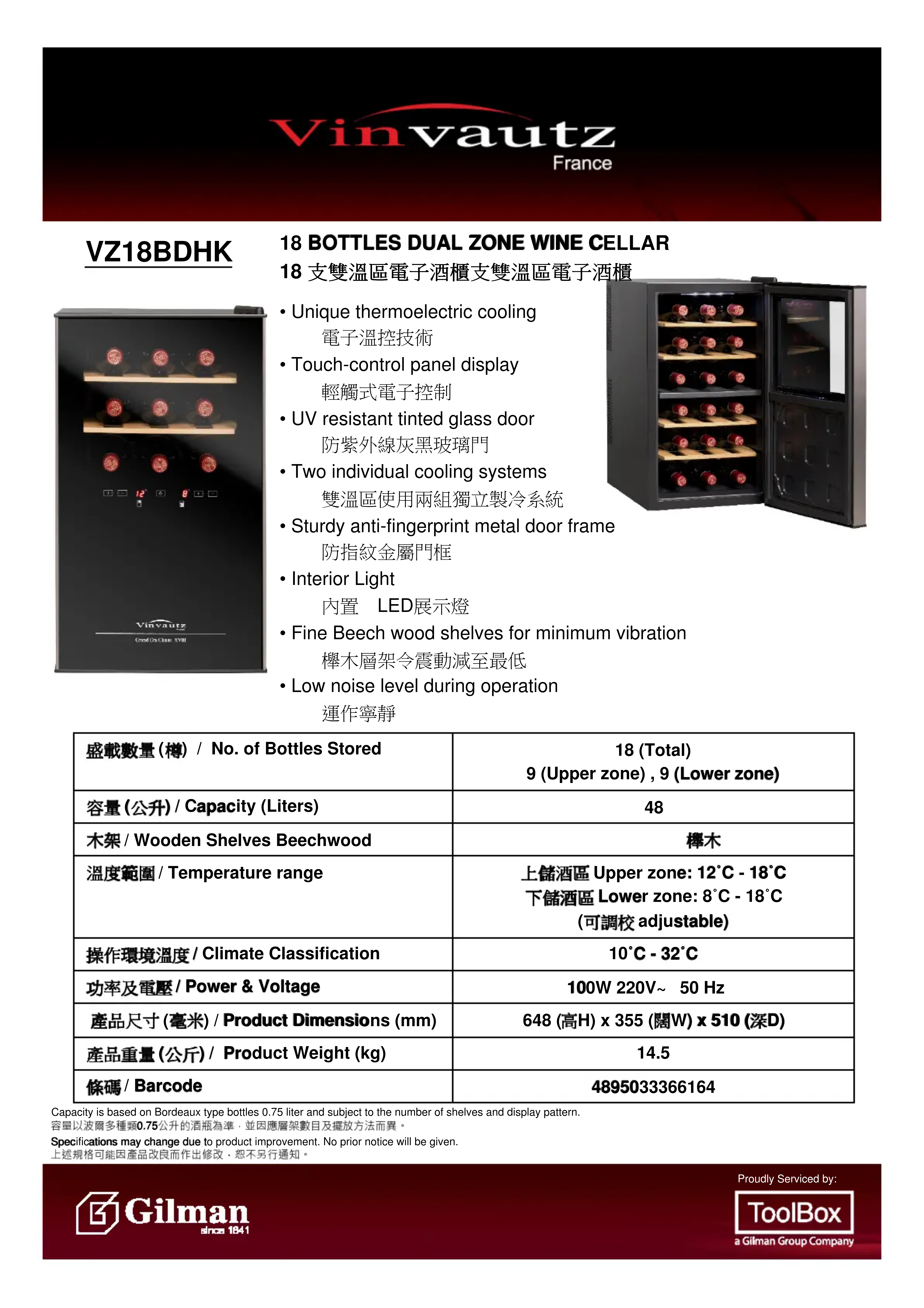 Retrouvez gratuitement la notice de l'appareil VZ18BDHK Vinvautz au format PDF.