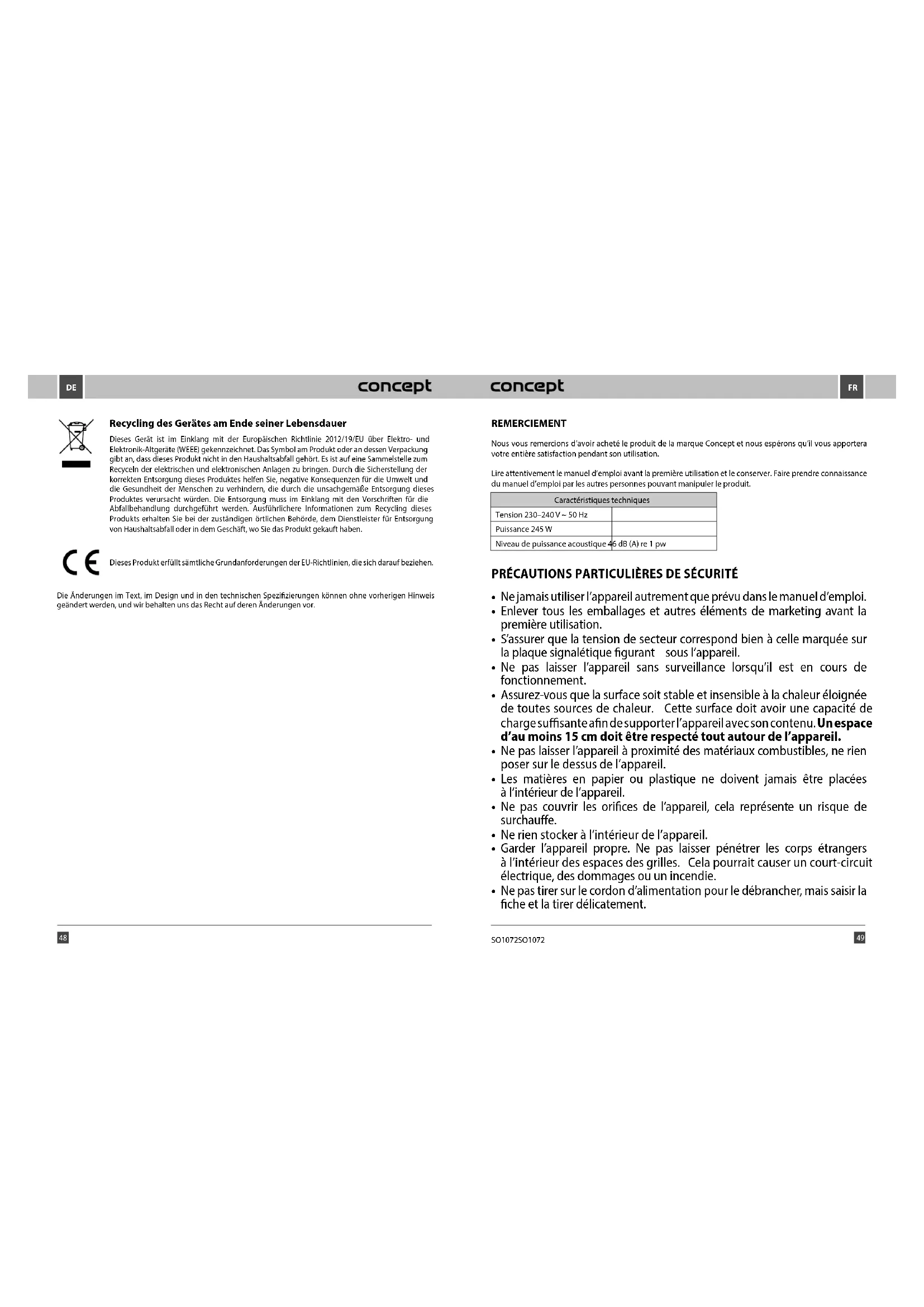 Retrouvez gratuitement la notice de l'appareil SO1072 Concept au format PDF.