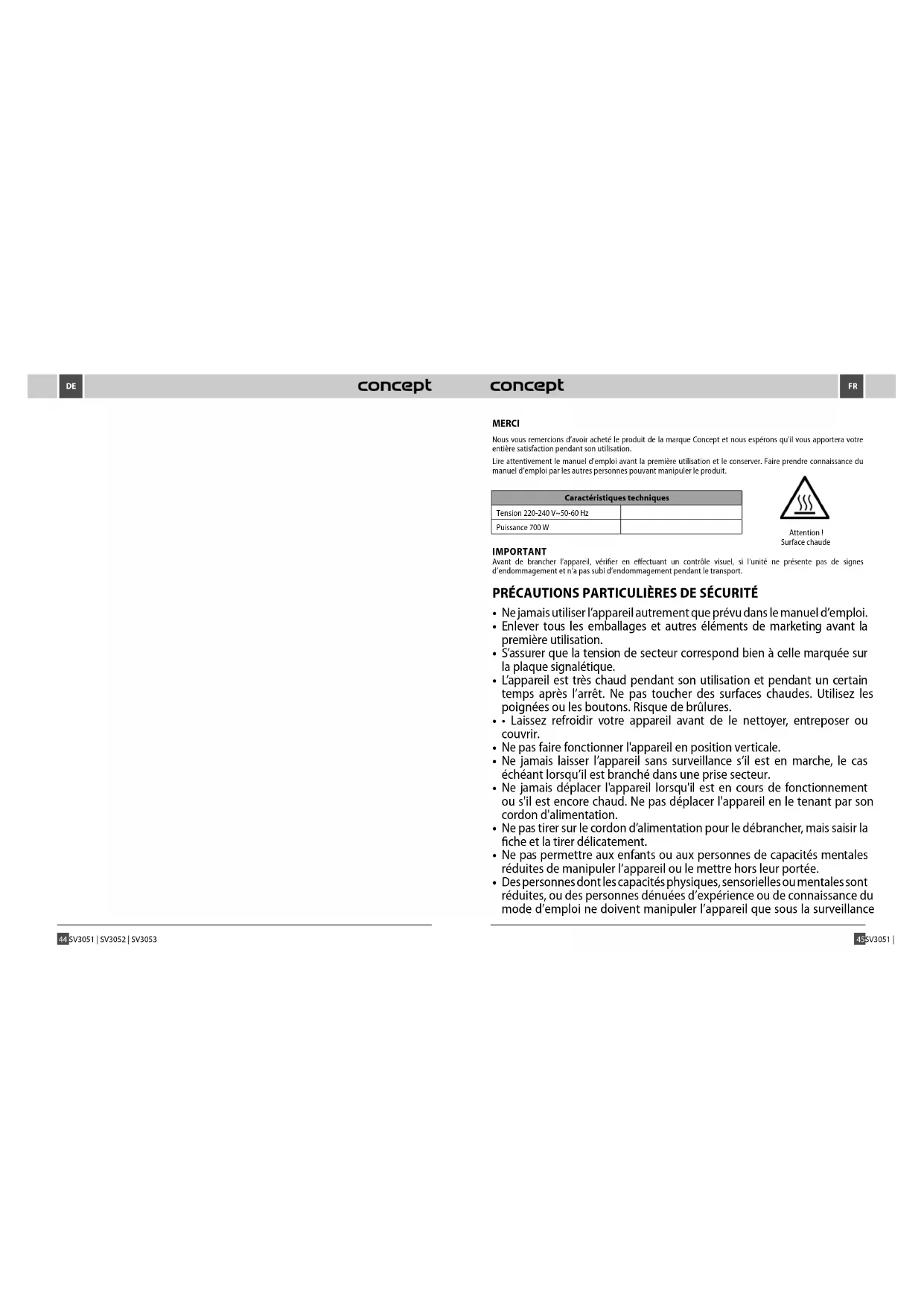 Retrouvez gratuitement la notice de l'appareil SV3051 Concept au format PDF.